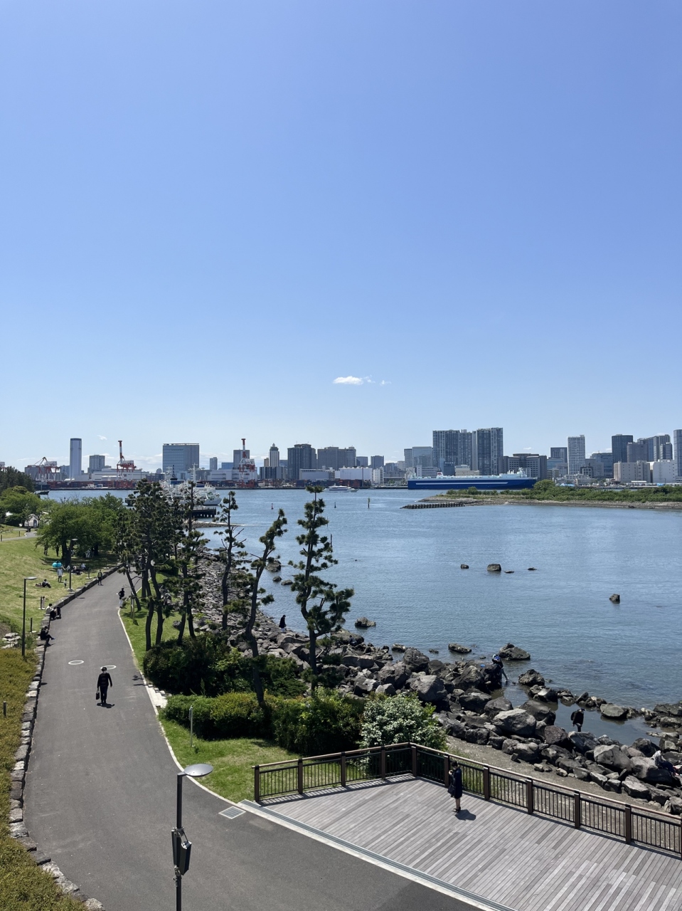 レインボーブリッジや東京タワーといった、これぞ東京という感じの風景を収めることが出来る、海沿いのプロムナードです。外国の観光地を参考にしているようで、潮風を浴びながらの散策を楽しめますが、週末は人が多いです。