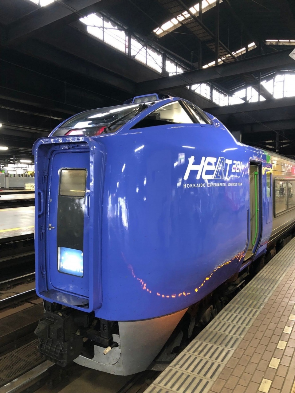札幌から函館へ移動するのに利用した鉄道で、特急です。約3時間で到着します。以前は北斗でしたが、スーパー北斗が登場してから曲線でのスピードが更に出るようになり、三十分短縮が可能となりました。