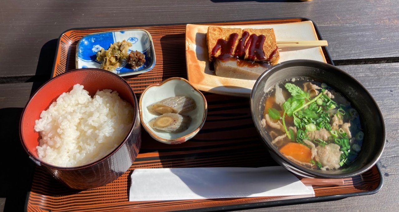 伊賀牛汁、田楽、付出し、伊賀米こしひかり、香の物で、¥1250。