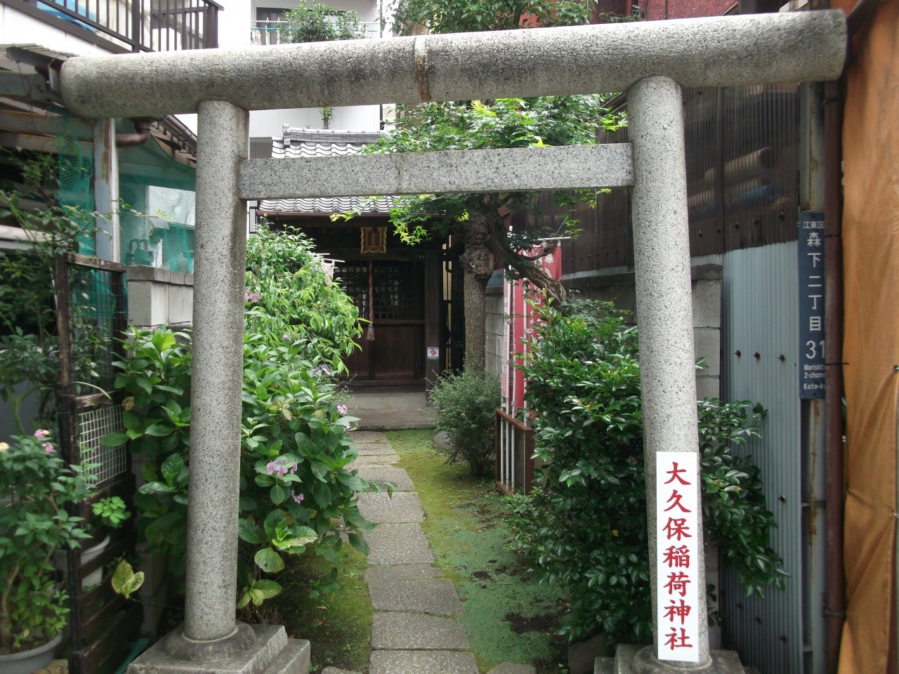 地下鉄森下駅から歩いて6分ほど、住宅に挟まれるようにして建つ小さな神社です。石造りの鳥居をくぐり参道を進んでいくと小さなお社がありました。中はとてもきれいに清掃されていて、地元にしっかりと根付いた神社であることが伝わってきました。