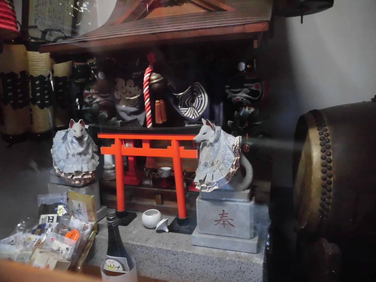 門前仲町から清澄通り沿いに、東京海洋大学近くまで行った時に、たくさんの赤い幟端が立てられている神社があったので立ち寄ってみました。規模は決して大きくありませんが、お社を守っているお狐様は、前掛けのような服を着ていて、掃除が行き届いた稲荷神社でした。町会のの方たちが大切にお祀りしている様子が伺えました。