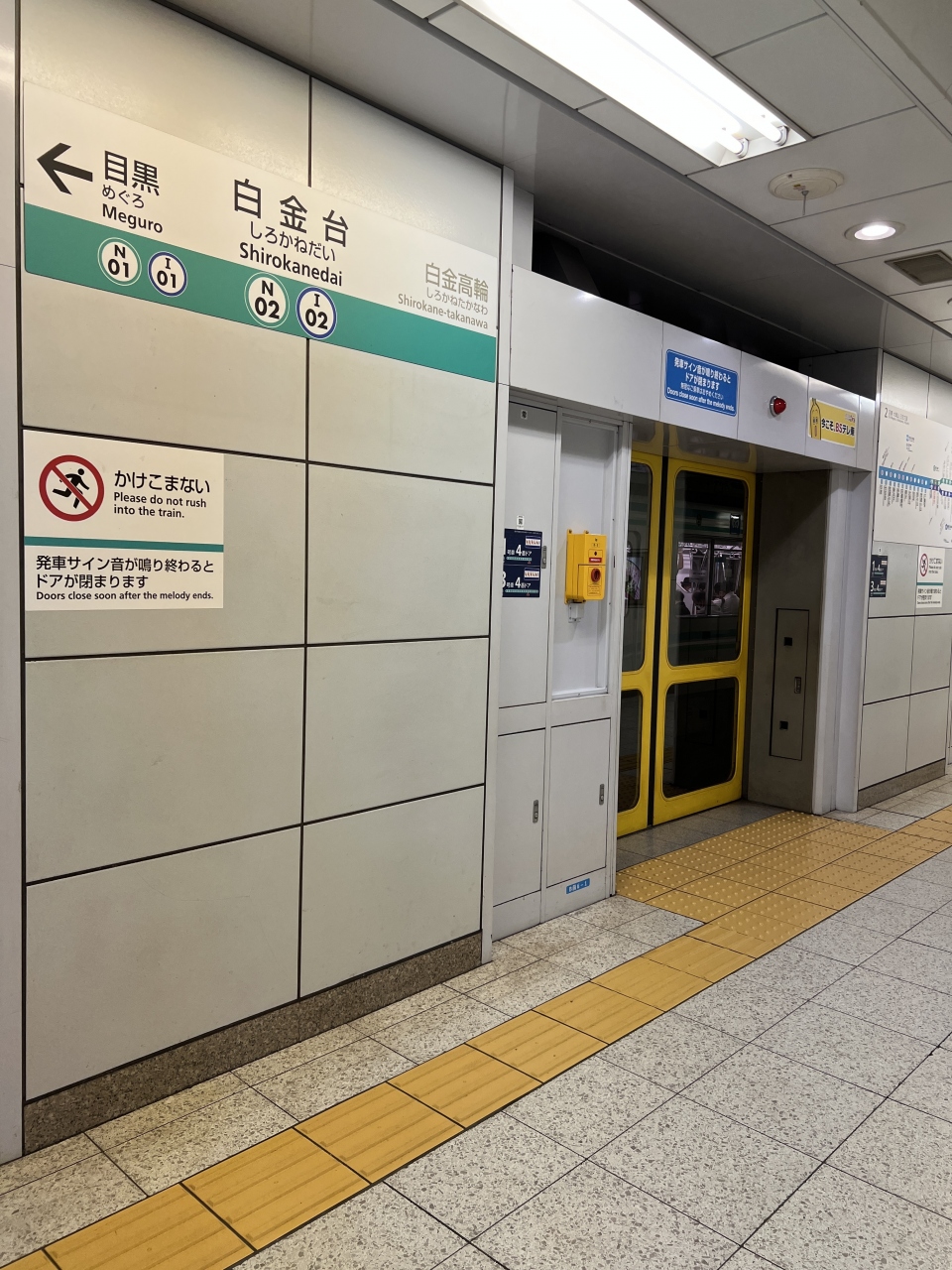東京メトロの中では新しい路線が南北線。そのせいか、ホームドアがほぼ全駅に設置されています。上りも下りも白金高輪駅止まりの電車も多いのですが、ここで待てばどの電車も目黒方面に必ず行けるように接続ができています。ただ、逆に上りは南北線と都営三田線にわかれるので、行先によっては待つことも。