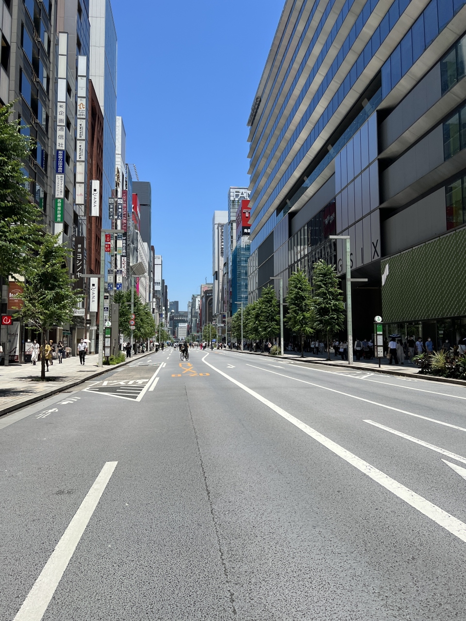 三越、松屋、GINZASIX、アップルストア銀座といった大型店が銀座中央通りに揃っていて実に壮観。歩行者天国になると普段は車がたくさんいるこのストリートがスッキリとしてしまうのです。その分、他の道にしわ寄せがいくのですけどね。