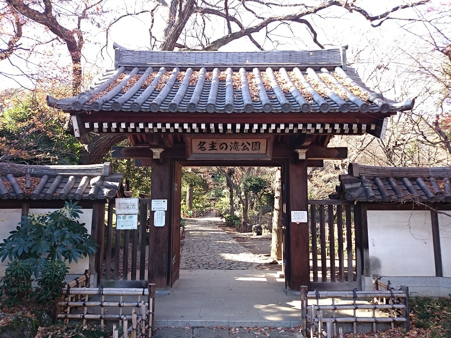JR京浜東北線王子駅から徒歩15分程度、北区岸町1丁目にある北区立の公園。江戸時代に王子村の名主・畑野孫八が屋敷内に滝をつくりお茶を栽培していた場所で、昭和35年(1960年)に公園として開園したそうです。回遊式の庭園で、男滝、女滝、独鈷の滝、涌玉の滝の4つの滝が復元されていて、緑と水の多い、素敵な公園だと思いました。