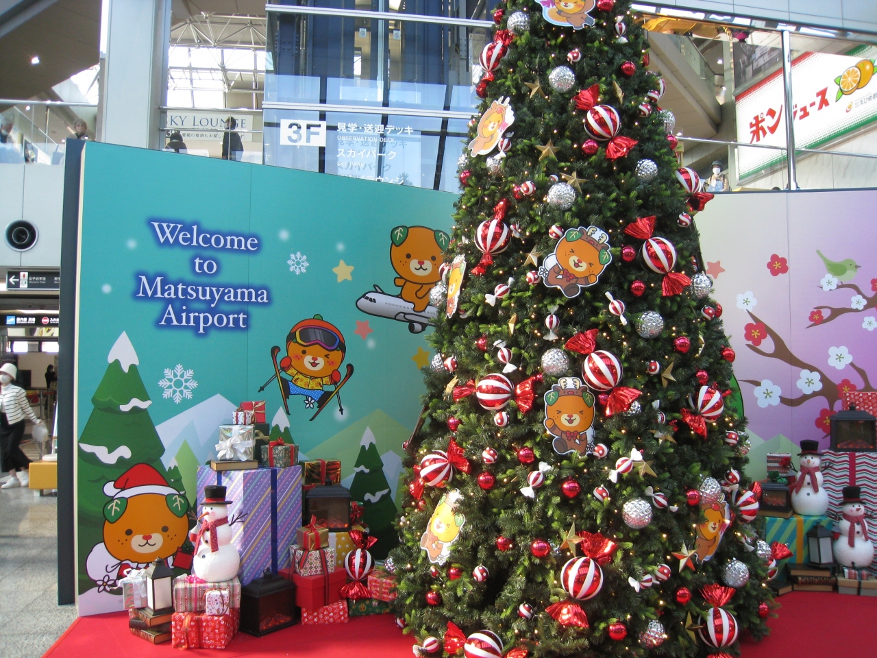 初めての『松山空港』、綺麗なクリスマスツリーでお出迎え‼