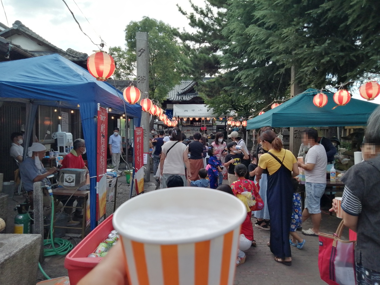 丸亀港にある太助燈籠近くのこじんまりした神社ですが、江戸時代は金毘羅宮遙拝所だったという由緒ある神社です。丸亀滞在中の7/30に夏祭りが開かれると聞いたので楽しみにして行きました。境内には提灯がつるされ、露店が出ており、ステージでは生演奏。規模は大きくはありませんが、逆に近所の人がやって来る町内のお祭りといった感じでとってもいい雰囲気。まだまだこんなお祭りが残っているんですね。町に根ざし、住民の方から親しまれている証拠だと思います。