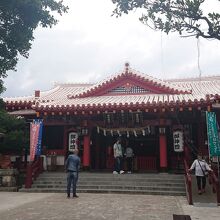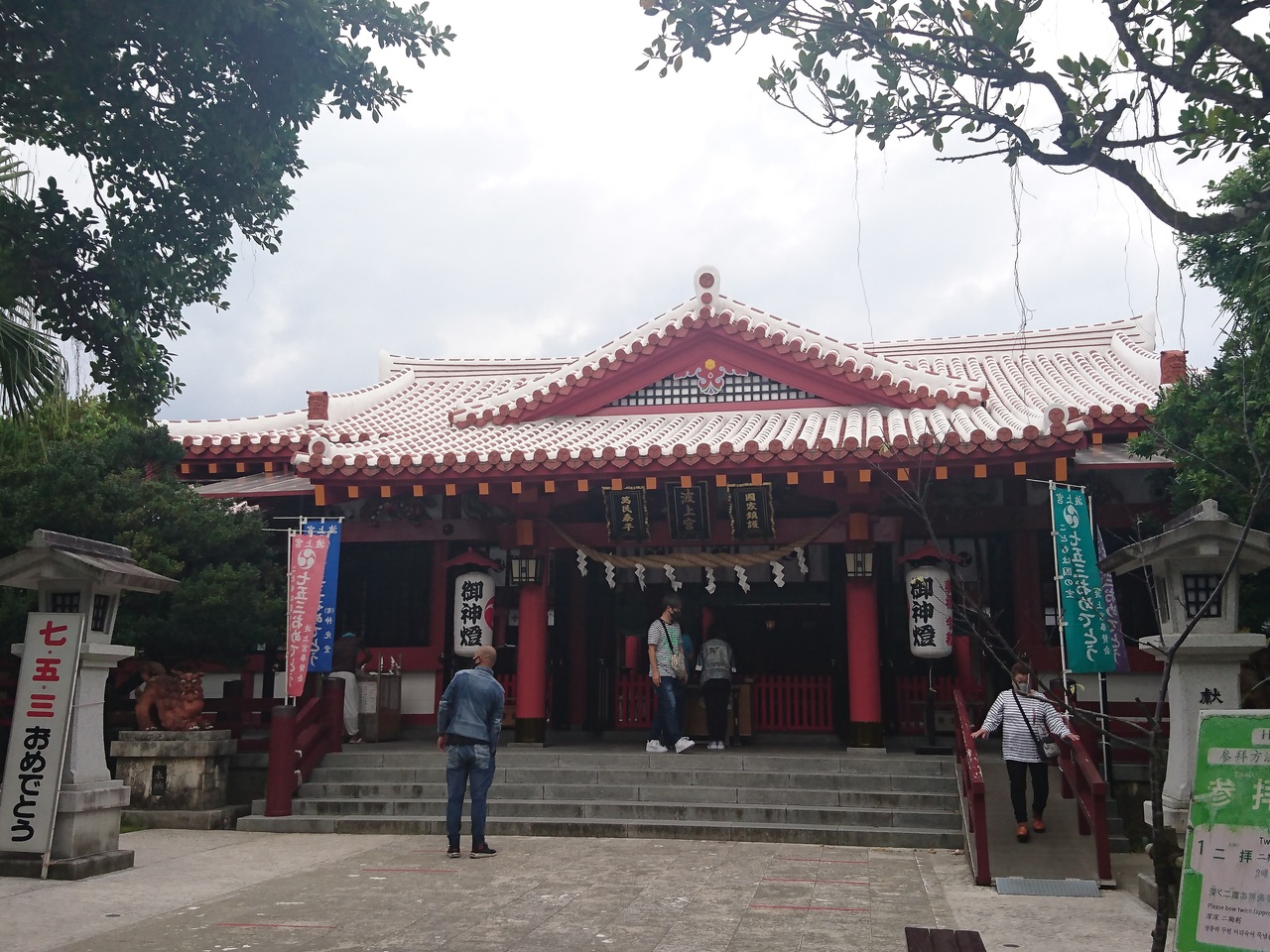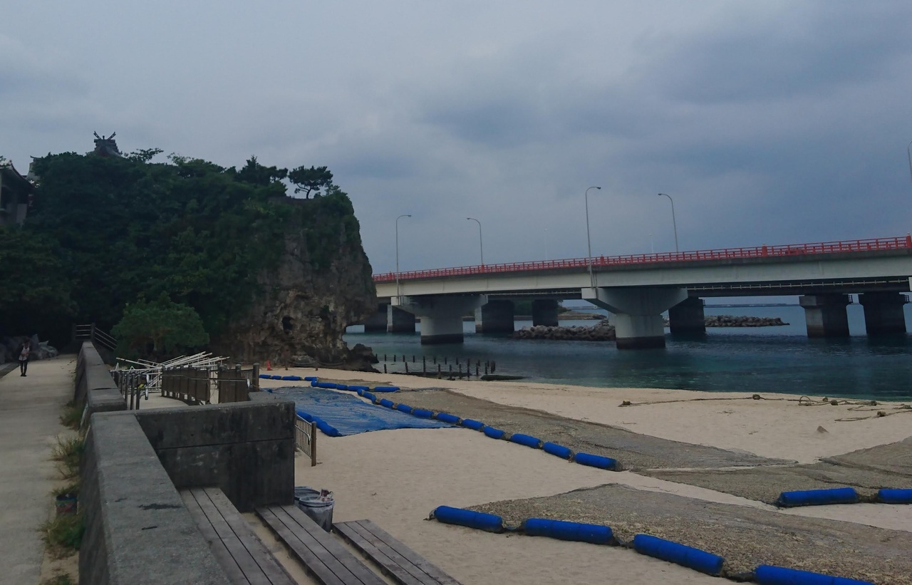 参拝後、脇にあるそ階段を下り、波の上ビーチまで行きましたが、そこからは写真で良く見られる崖の上の美しい姿は見にくいです。
