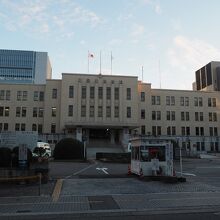 富山駅から富山城址公園へと歩いて行くとその途中の手前に富山県庁舎はあります。昭和10年に建てられた重厚なコンクリート造りの建物です。ルネサンス様式、クラシック様式などを加味された建物です。現在も使用されている建物です。夕方になっていたので、なかの見学はできませんでした。