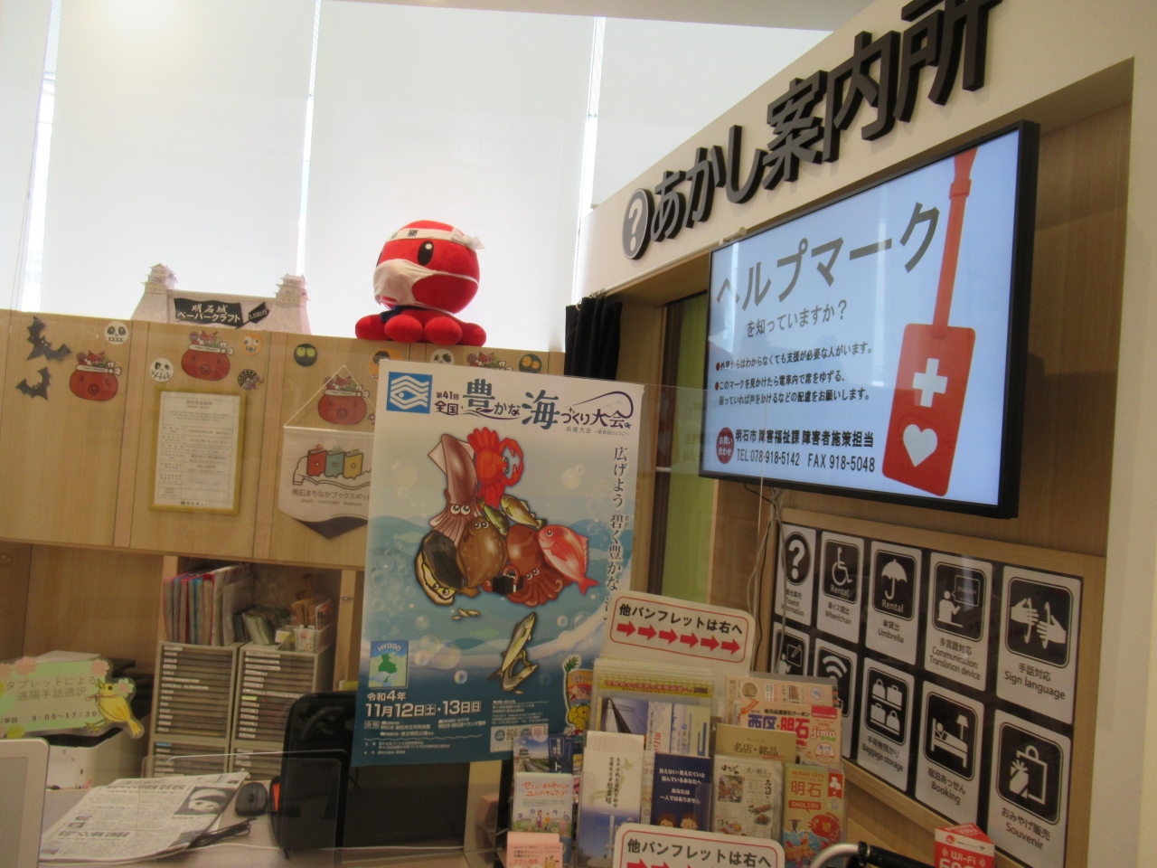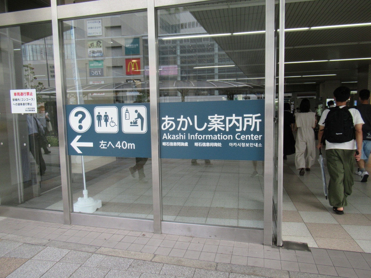 明石観光案内所である「あかし案内所」は、明石駅の南口を出たところにあるピオレ明石西館に入っています。