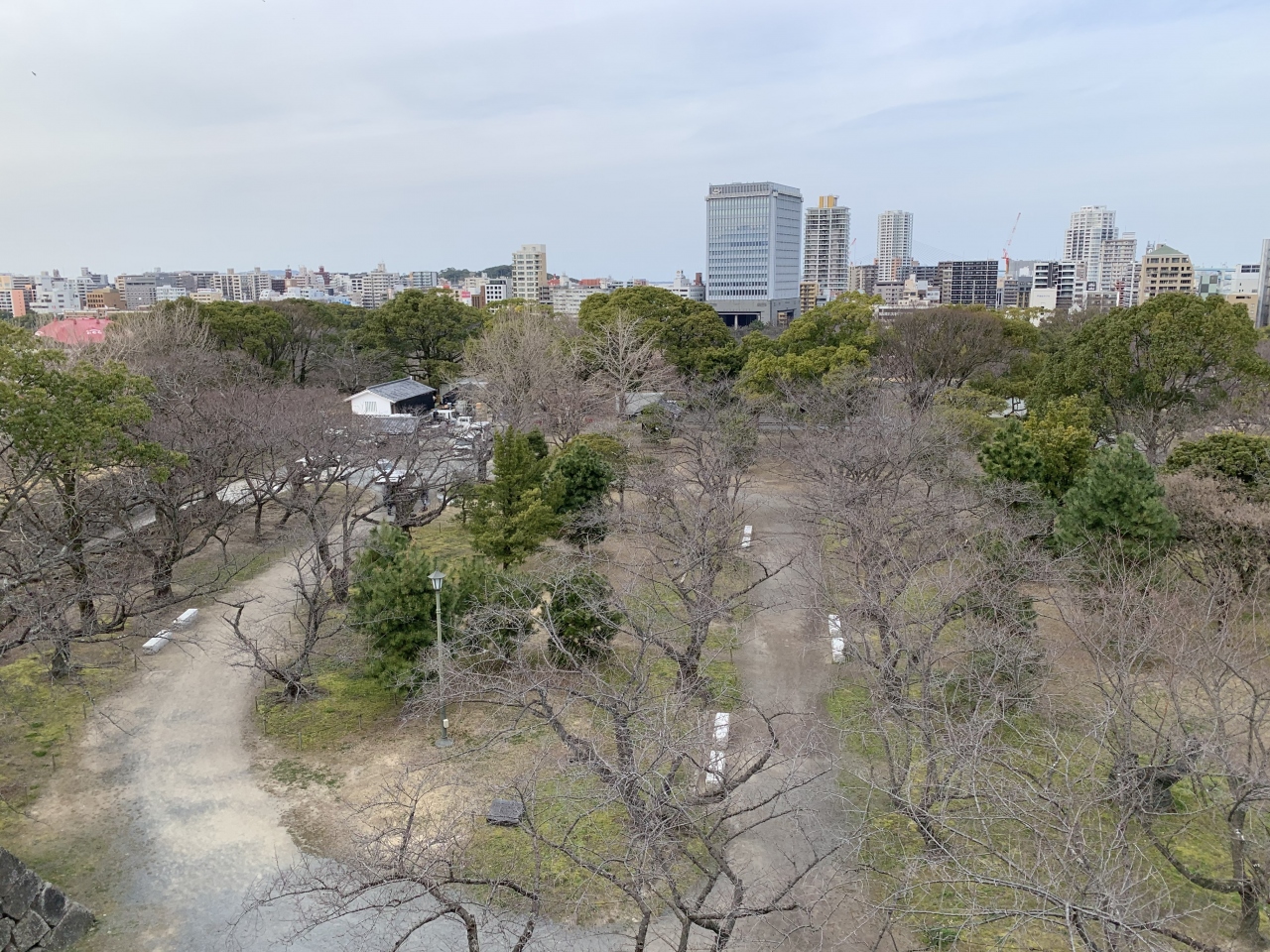 大濠公園の東に隣接する「福岡城跡」を中心とする公園です。福岡城は、黒田長政が慶長6年(1601年)から7年がかりで築城した城で、舞鶴城とも言われるそうです。天守跡に上って周囲を眺めることができますが、高度はそれほど高くはありません。「下之橋御門(しものはしごもん)」など、部分的に復元されていました。