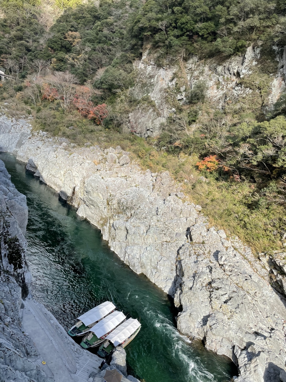 団体ツアー訪れました。船頭さんが成り立ちを説明してくれて勉強になります。ライオンの横顔の形に見える岩もありました。大岩群の迫力と水の透明度が素晴らしく清々しい気分でした。12月上旬はまずまず冷えるので防寒具が必要です。タイミング良く山の中腹を走る予讃線アンパンマン列車を見られました。