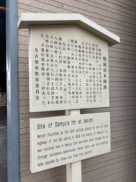 復元された高札場と本陣跡の表示があるだけで、遺構のようなものは残っていません。街道筋から少し離れたところに鳴海城址があるようですが、今回は行きませんでした。見どころといったものはあまりない宿場ですが、宿場の入口に当たる升形はあるので、往時の雰囲気が少し感じられました。