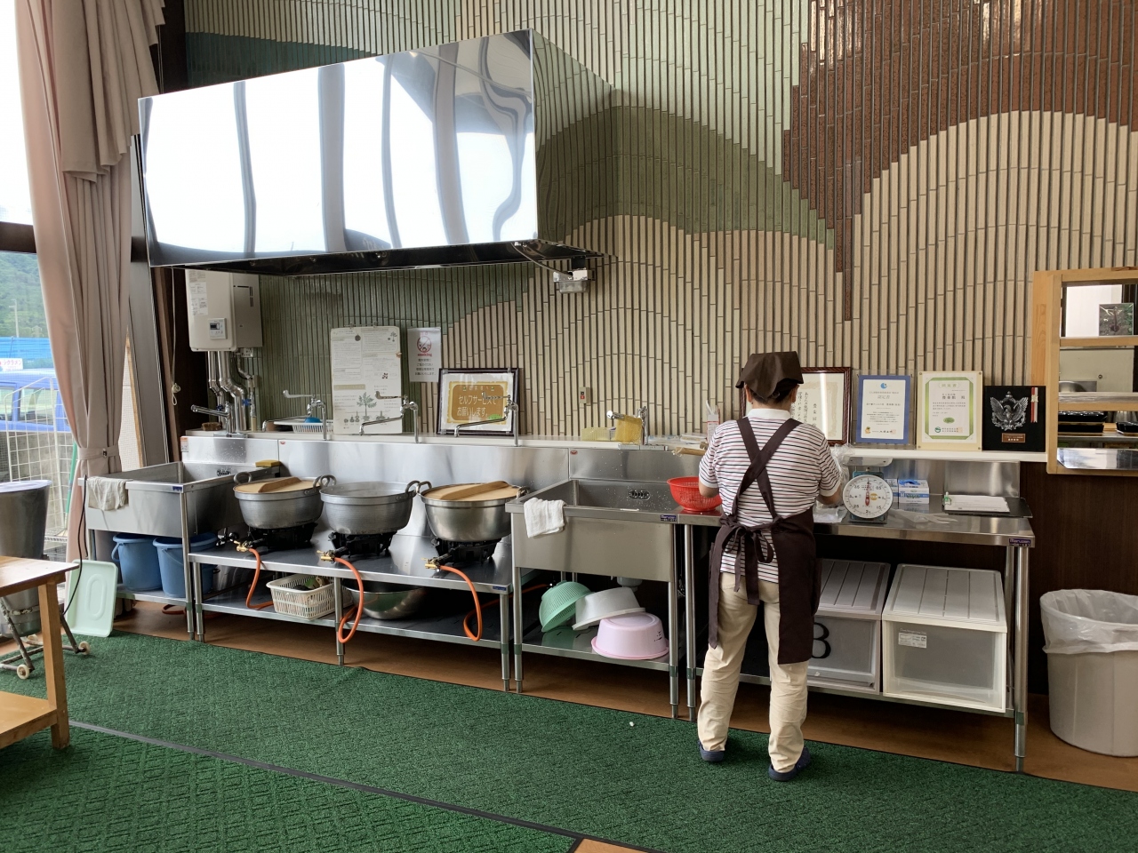 月夜野ICで高速を降り、国道17号線を西へ進むと着きます。「たくみの里」には、かつての三国街道の宿場だった須川宿に、木工・竹細工・陶芸など山里の伝統的な技法を伝える”たくみの家”が点在します。「里山食堂」にて休憩、その一角には”食の体験道場”がありご家族がこんにゃく作りを体験しておられました。レストランで”季節のフルーツケーキ(400円)”と”季節のミルクプリン(200円)”、そしてコーヒー(200円)をいただきました。須川宿を散策した後の休憩に最適でした。