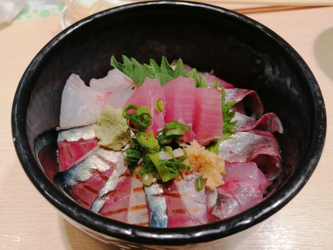 待ち時間40分にてカウンター席に、座れました、朝取れネタのミニ海鮮丼1,600円をいただきました、味はともかく、少し高いです。