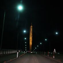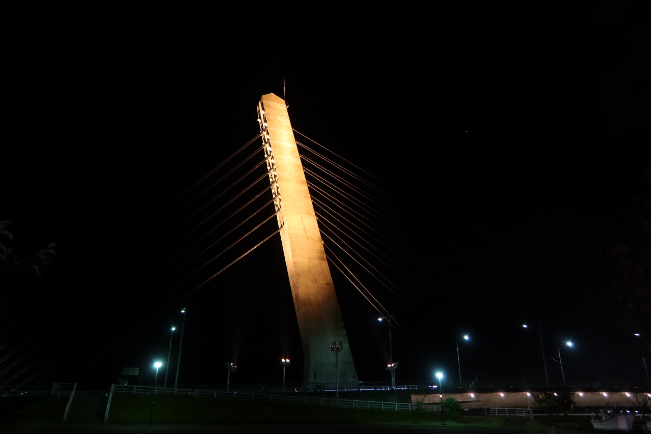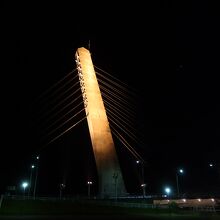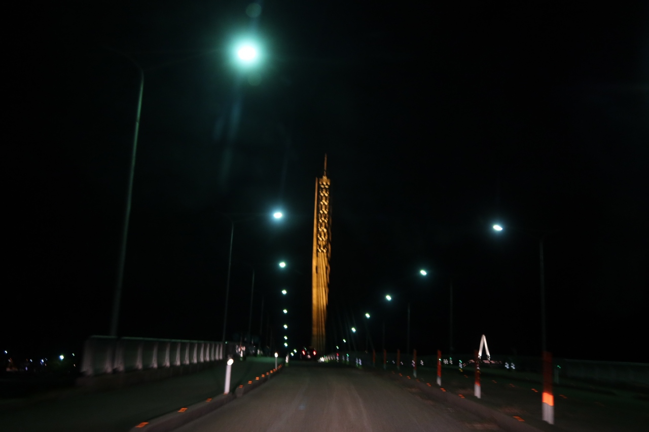 工事中でしたので道路状況はさほど良くなかったですが中央マスト部がライトアップされており闇夜に巨大な構造物が浮かびあがっている様はなかなか胸アツな眺めでした。
