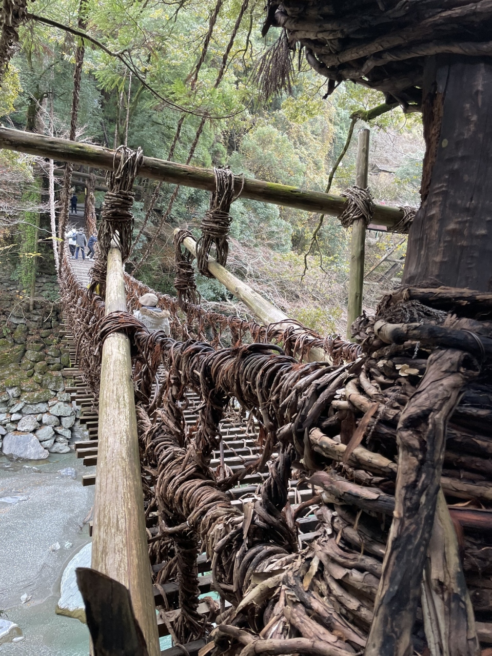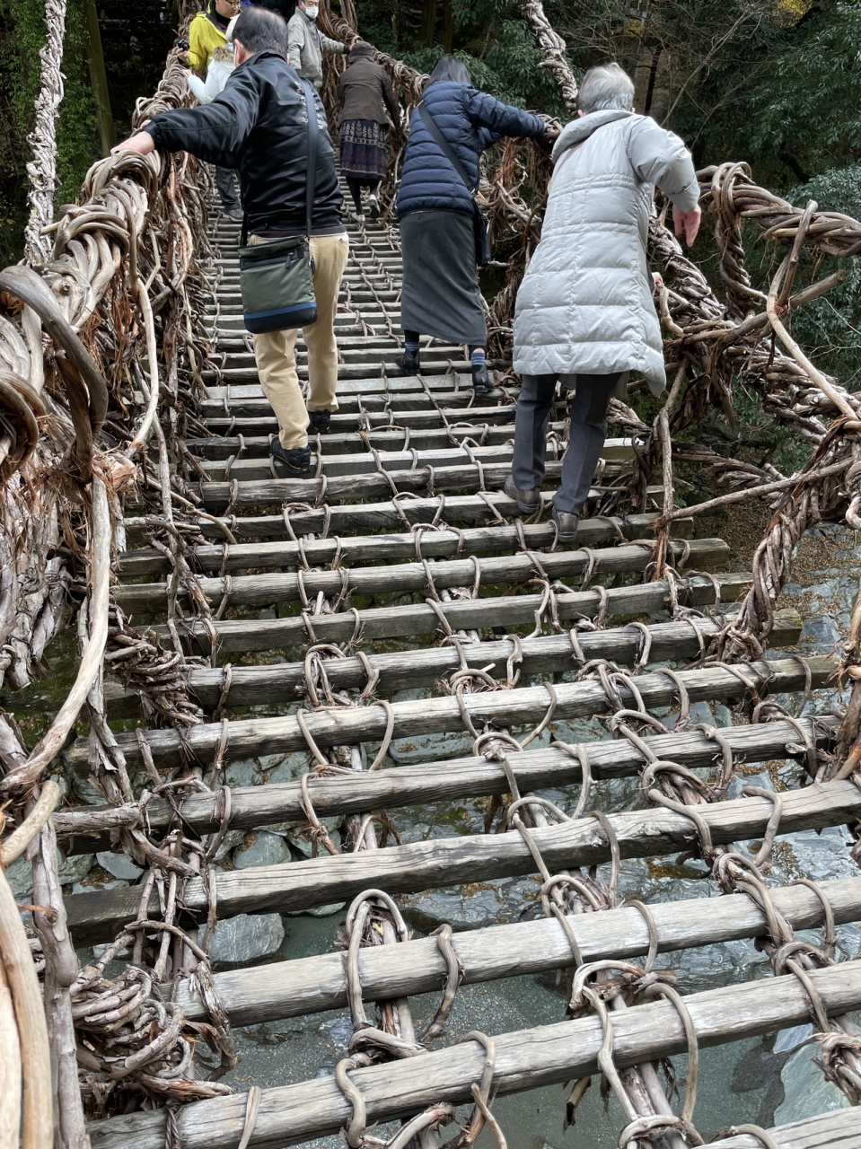 趣のある素敵な橋でした。高いところは平気なのですが、想像していた以上に踏み板の隙間があって木製のせいかやや滑るので注意して歩きました。橋下の清流がきれいでした。足の裏の中心部で捉えて進んでいけば歩きやすいです。