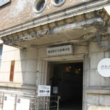 地下鉄の市役所駅から南に歩いて5分足らずのところにあります。昭和初期に建てられたビルだそうで、丸窓やひさしなどのデザインが美しいレトロな建物です。1階は戦争に関する資料館になっていて無料で入館できです。