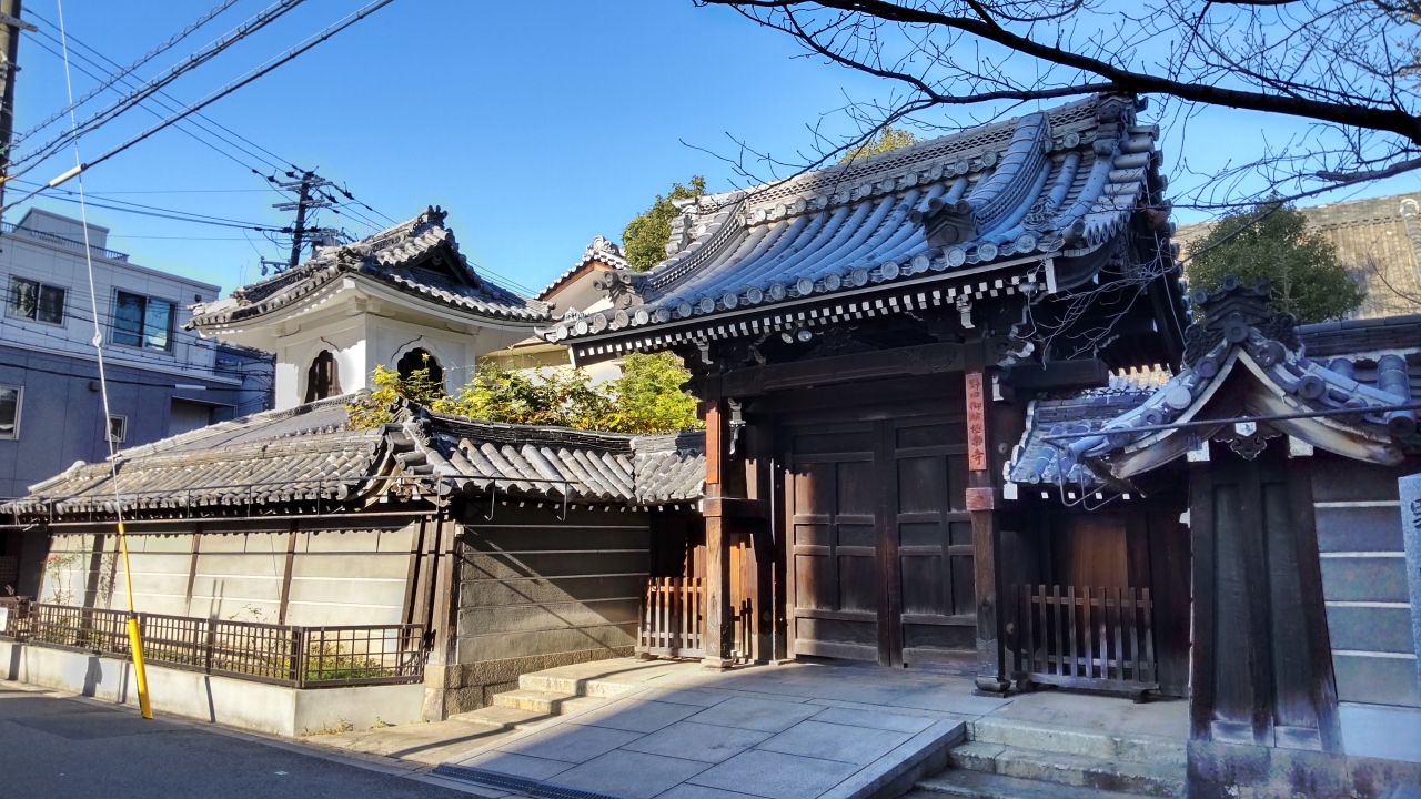 極楽寺は、JR野田駅から徒歩5分のところにある真宗大谷派の寺院です。恵美須神社の近くにある立派な寺院です。山門が閉まっており境内には入れなかったので門外からの参拝です。山門の前に野田城跡の石碑がありました。この近辺には、野田城があったようです。野田城は三好三人衆が築いた城とのことです。