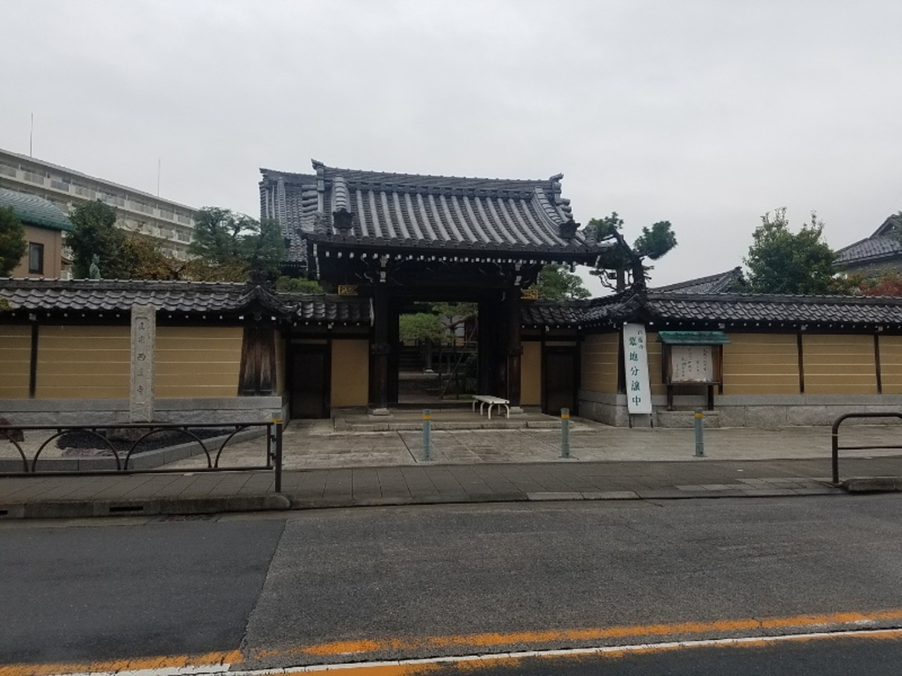 常福寺の隣にあります。松葉通りに面して両側に塀がある立派な山門をくぐると正面に本堂がありますがその視界を遮るように横に枝を伸ばす松が見事です。美しい台形のようなシルエットをしていて、枝を支えるために何本も添え木が当てられているのも松の木のボリュームが感じられて迫力がありました。
