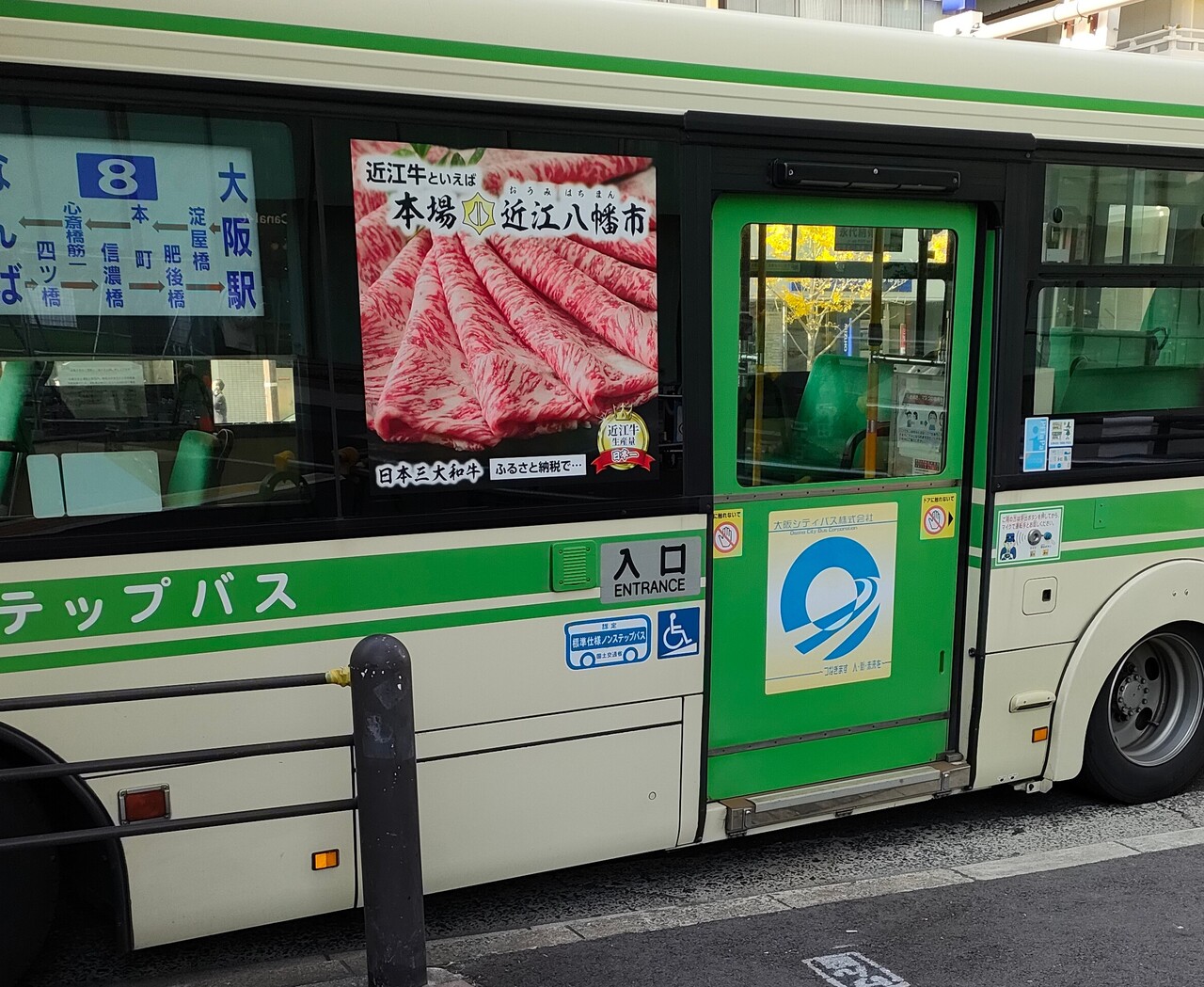 大阪市周辺を周っている大阪シティバスで、大阪駅バス乗り場で乗り換えてなんばまで向かいました。