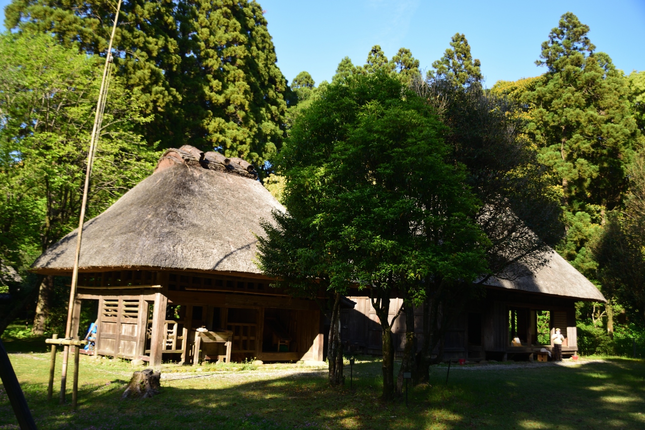 宮崎神宮の隣にある民家園は宮崎県総合博物館の一角にある建物の展示です。狩猟時代の家が再現されており、実際に使われていた道具や器具などが展示されています。中に入って触ったりすることができる施設もあります。
