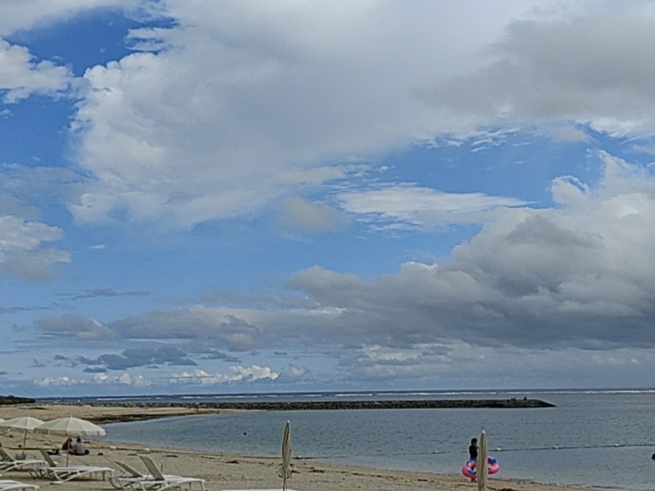 ホテルのすぐ前の海岸でした。きれいでした。ホテルのデッキチェアーやパラソルやバスタオルも借りられました。何度か行き、波打ち際で遊んだり、水着で海にも入りました。毎時8メートルの強風と寒さで、風邪をひきました。水温や風が冷たいです。
