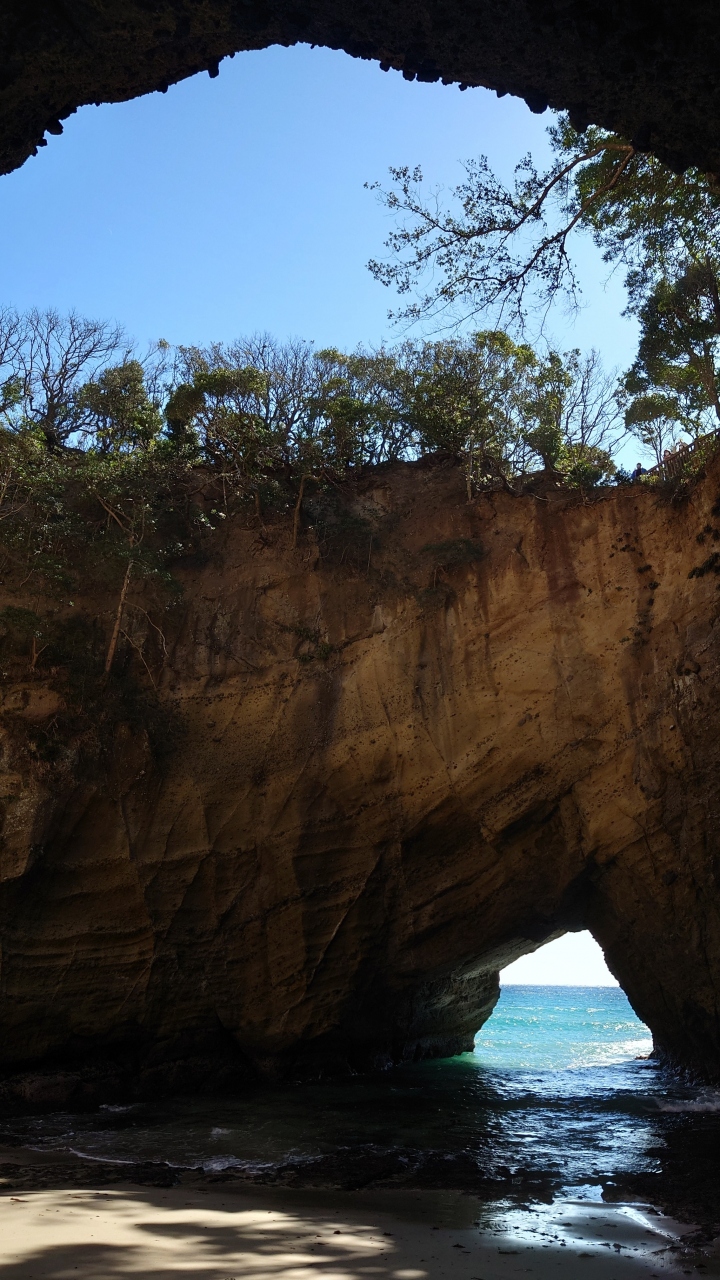 神秘的な洞窟です。洞窟入口の脇に有料駐車場があります。洞窟内部が海岸線になっています。竜宮窟の特徴は横と上に穴が開いていて、太陽光が射し込みます。洞窟上部は一周できるように整備されています。映えスポットを狙っているようで、洞窟上部から覗き込むとハートの形に見えると説明書きがありましたが、これは無理があると感じました。短時間で観光できますが、逆に駐車場代が高く感じました。