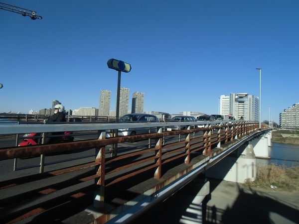 平間駅出入口から南へ約690m、多摩川に架かる橋です。