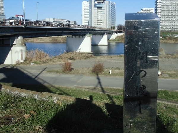 川崎側の橋の袂には、橋が架かる以前にここにあった「平間の渡し」の碑があります。