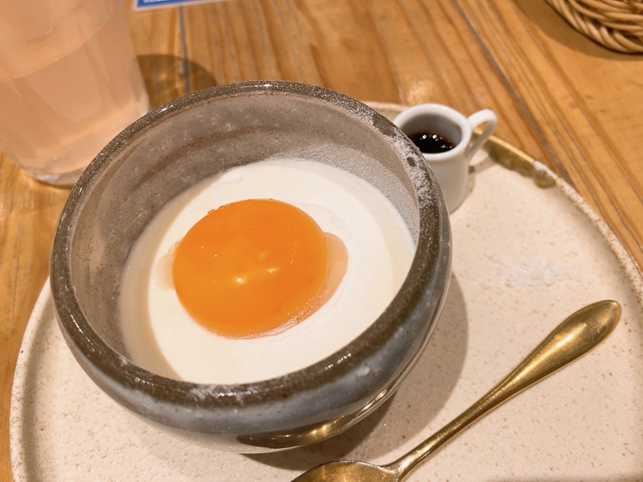 今回もデザートの島プリンを注文しちゃいました。 卵黄が1個そのままのってる、なかなか斬新なプリンですが、カラメルソースと岩塩をまぶして、塩キャラメルプリンにして頂きました。