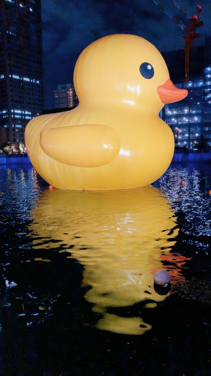 今年も、あひるちゃんが大阪にやって来た! ライトアップされてめっちゃキレイでした。