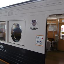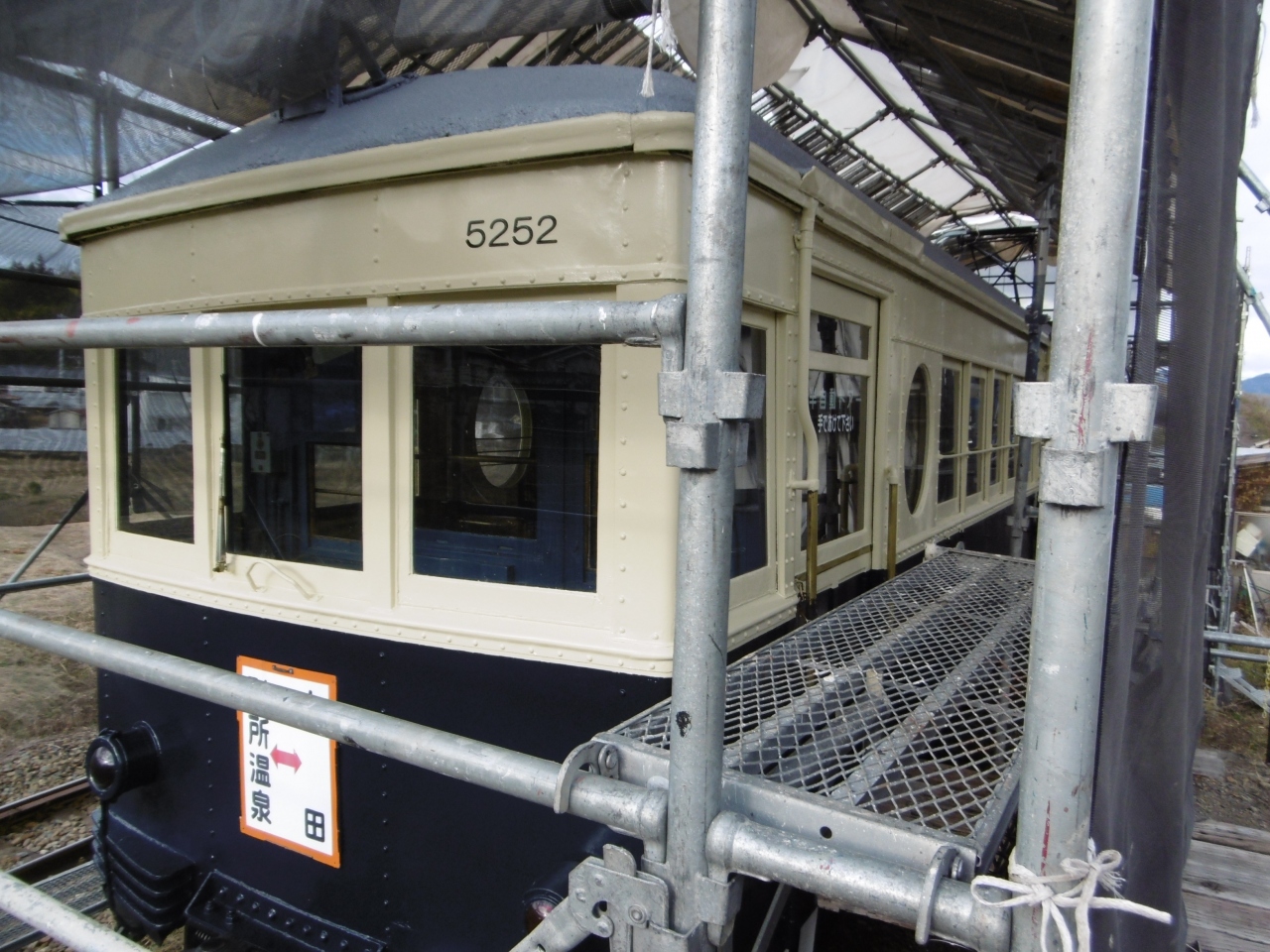 休日は地元の女子大生がボランティアで大正ロマンな衣装をきてお出迎えしてくれます。行きは名物の丸窓をリメイクした車輌 帰りは旧東急のラッピング車輌でした。