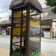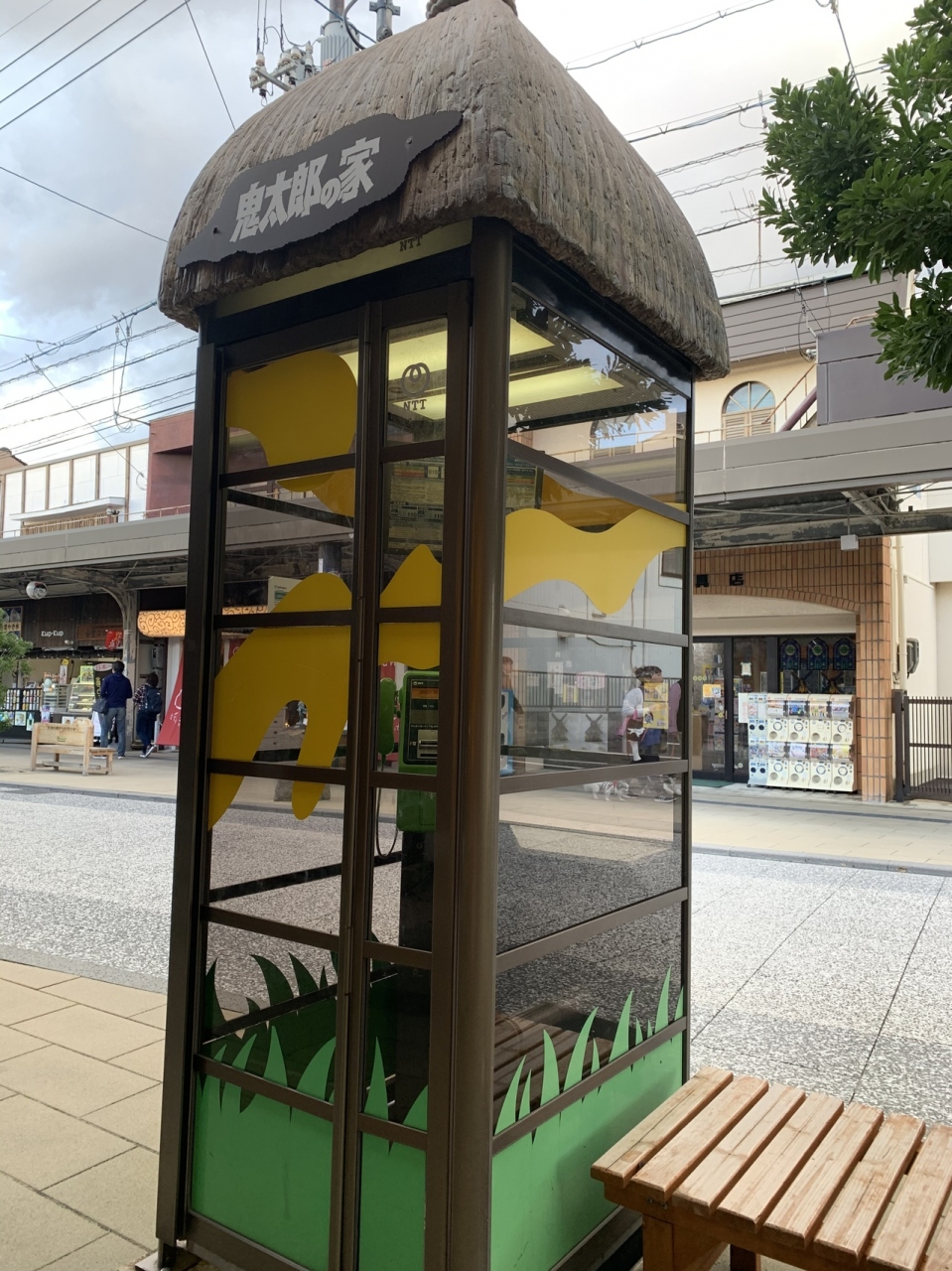 水木しげるロードに変わった珍しいデザインの公衆電話ボックスがありました。鬼太郎の家と書いてあって水木しげるロードにぴったりのかわいい電話ボックスでした。最近はあまり使う機会がありませんが、いざという時あると安心ですね。