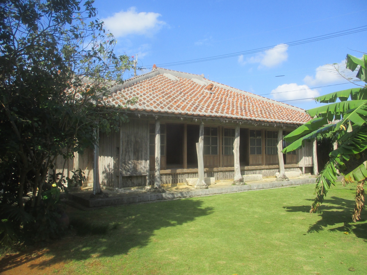 与論民俗村の敷地のもっとも奥に沖縄風の家屋がありました。ここは鹿児島県ですが、沖縄にほど近い与論島は、琉球の文化に大きく影響されました。与論では数少ない赤瓦の民家も再現されていました。屋根の上のシーサーが迎えてくれました。沖永良部島までは沖縄の文化の影響を受けて、家屋にシーサーがあるようです。