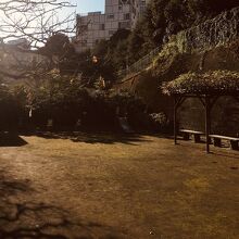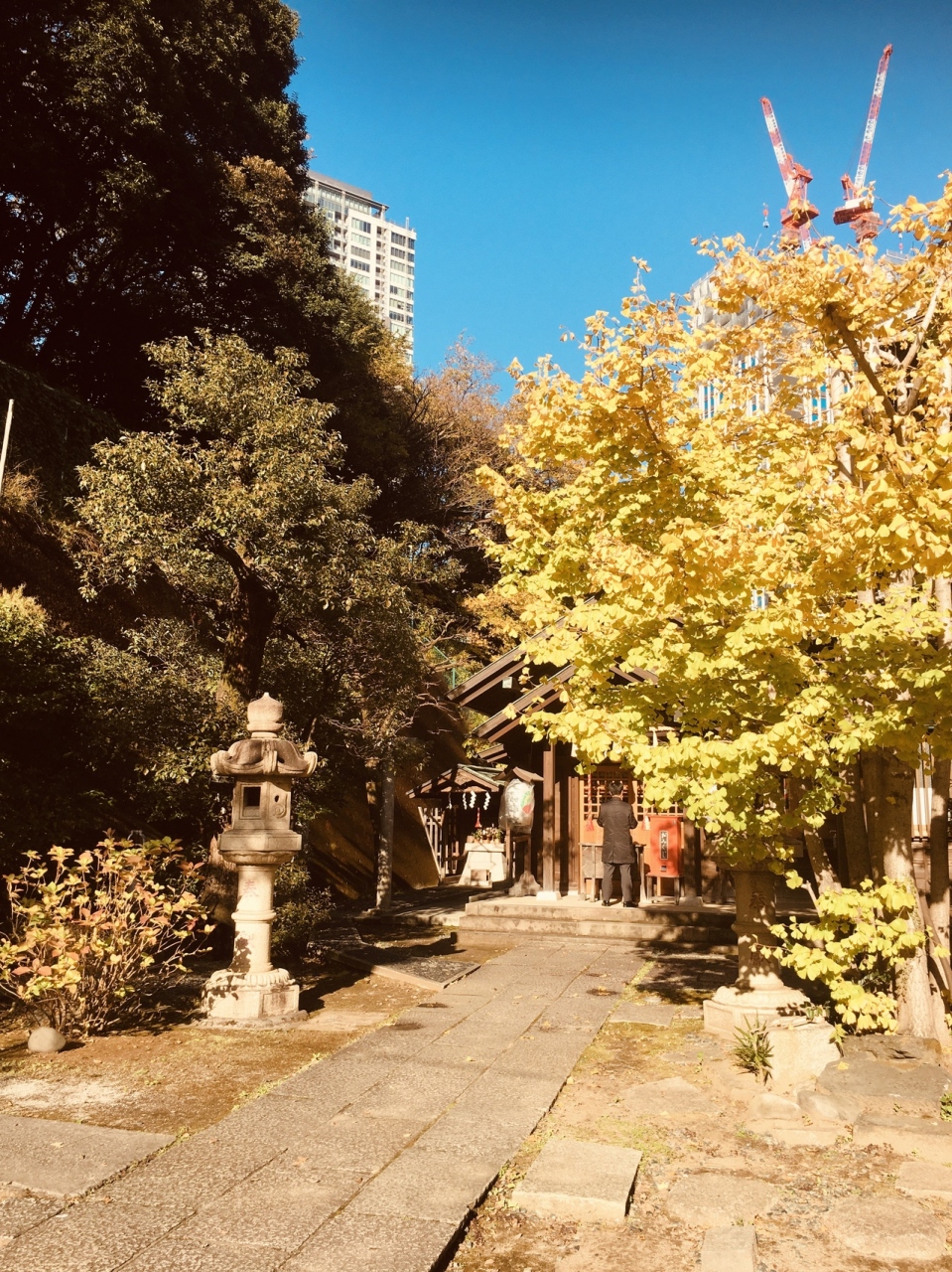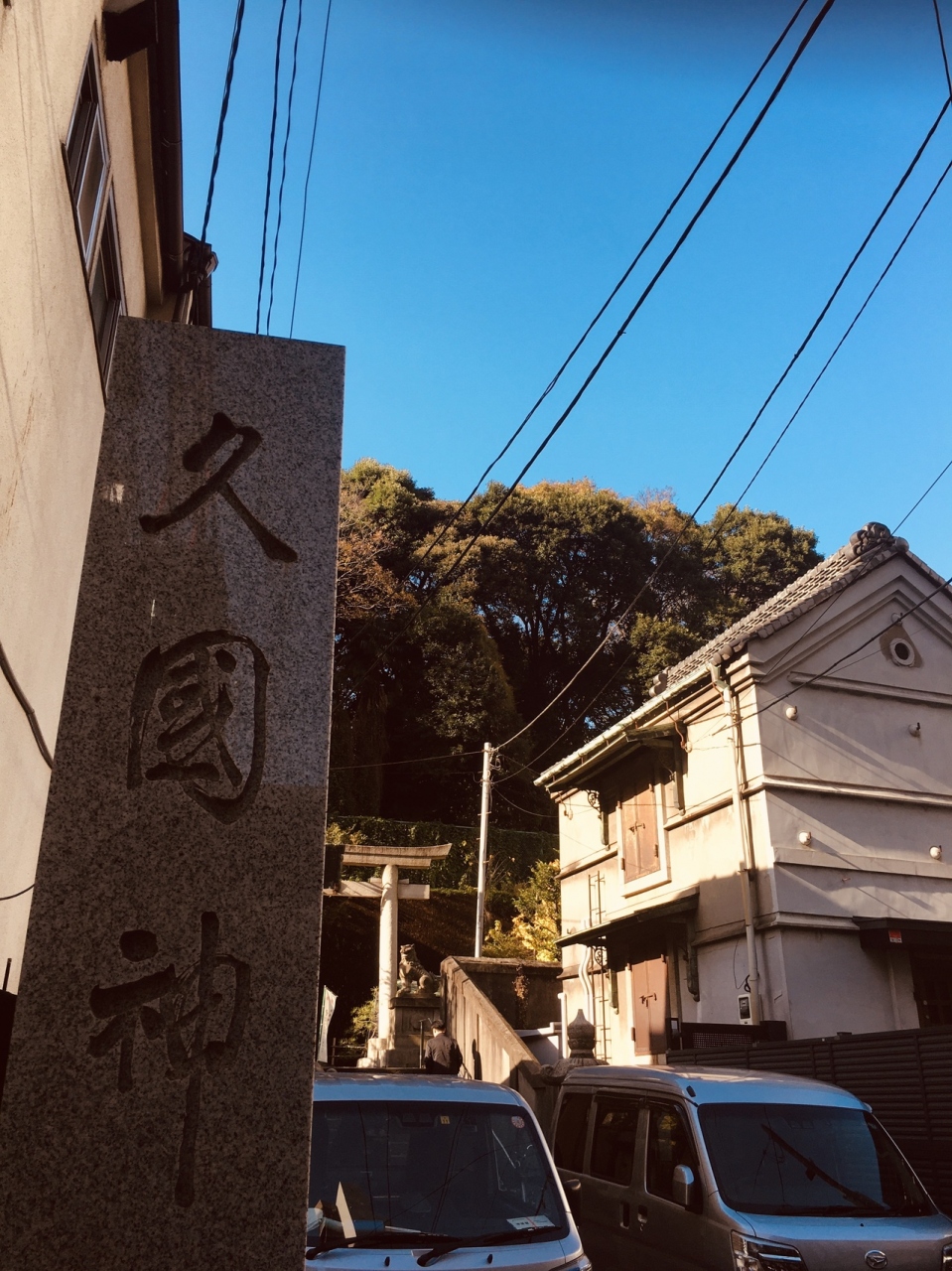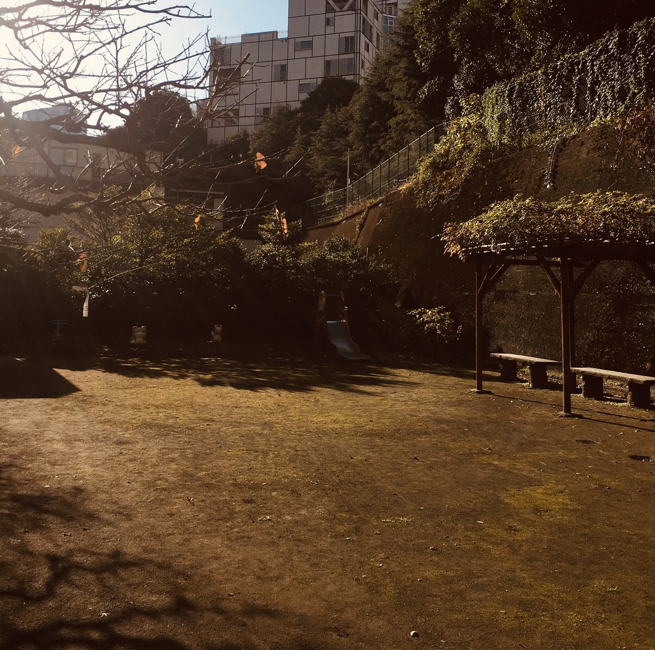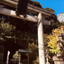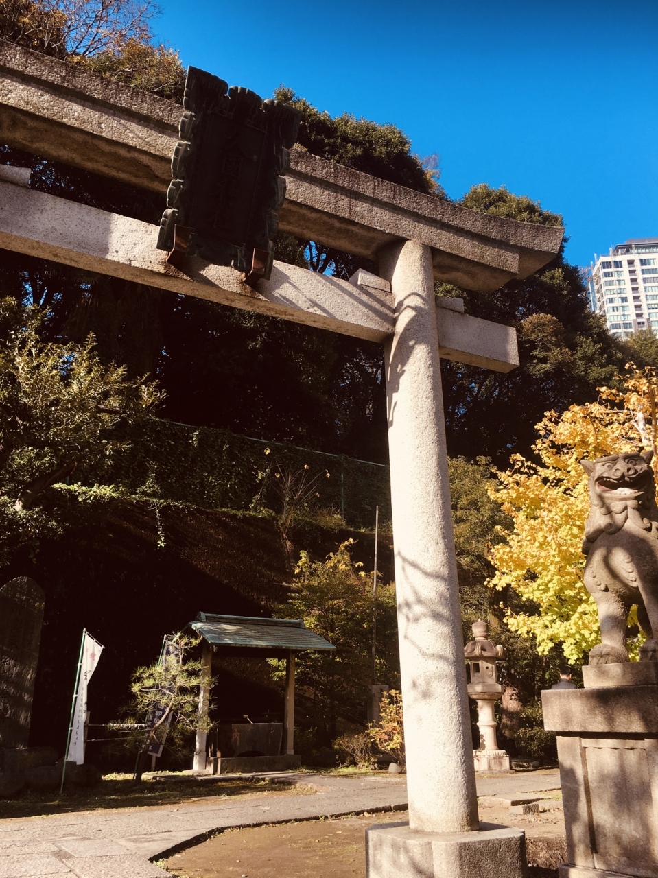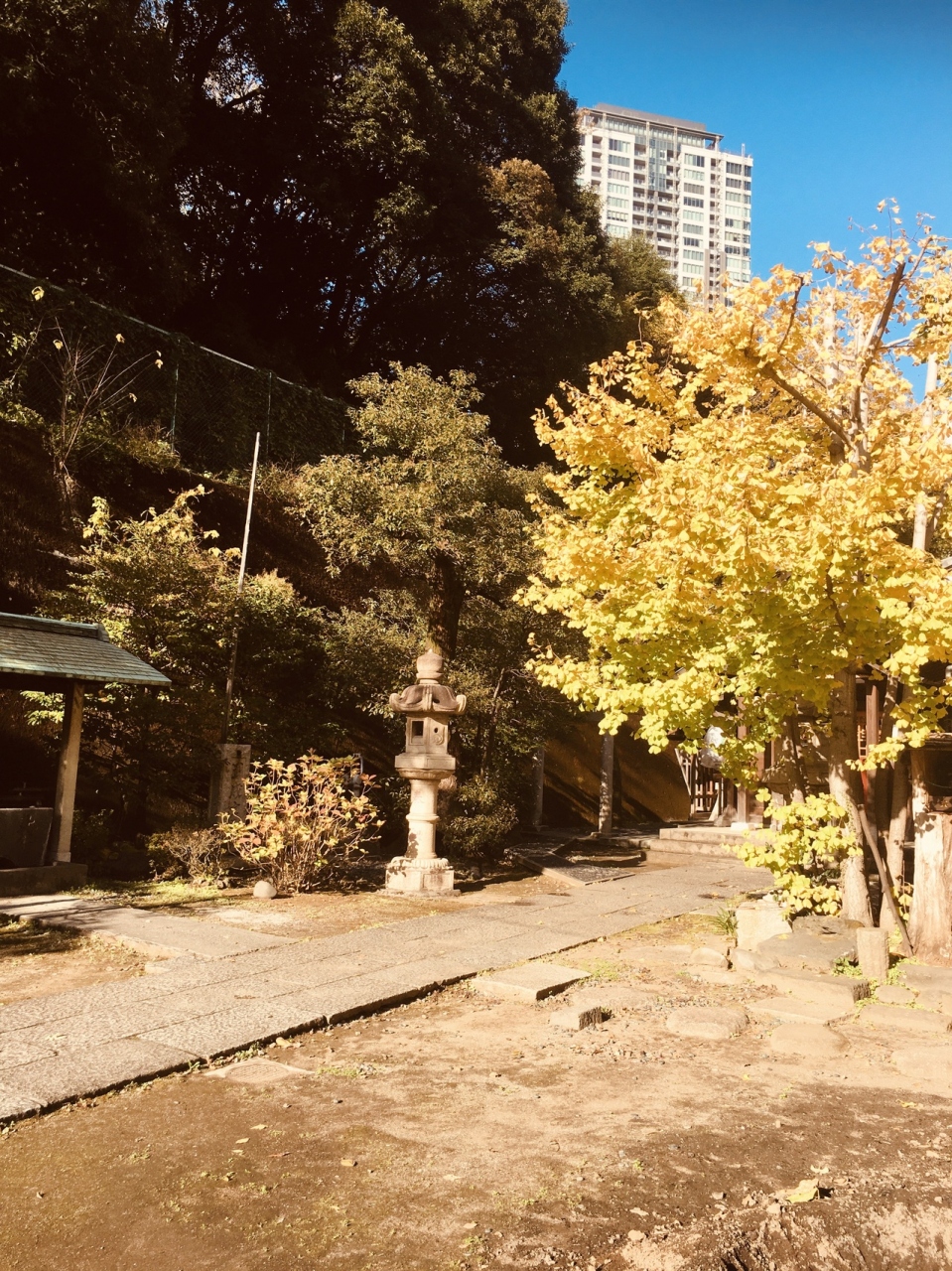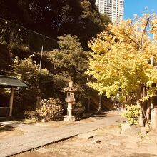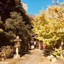 裏通りの少し奥まったところにあるため、通り過ぎてしまいそうでしたが、神社の名を書いた石碑と鳥居がありました。境内入ると左側は広場です少ないながらも子供の遊戯施設もありました。イチョウの木の後方に社殿がある穴場の神社です。