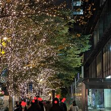 メインストリートである丸の内仲通りを中心に有楽町駅前の東京交通会館から大手町仲通りまで丸の内エリア内な街路樹が、シャンパンゴールド色のLEDで華やかになります。
