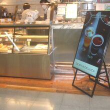 地下1階よーじや南(左側)にあるカフェです。2路線を繋ぐこの地下は、早朝からかなりの往来がありますが、南ウイングはやや少なめで、静かな環境にあります。モーニングからゆっくりと過ごせます。店舗前には、早々とクリスマススイーツが並べられ、これをチェックするだけでも楽しめます。かなり高めですが。