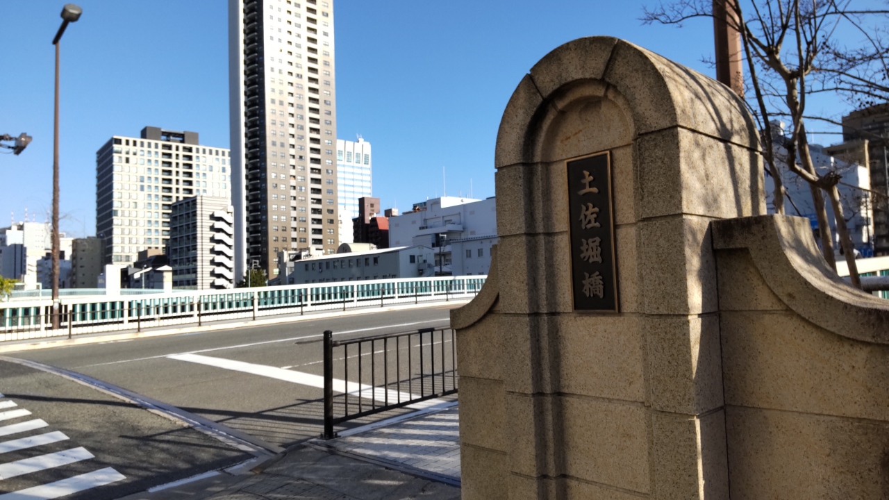 土佐堀橋は、水の都大阪の土佐堀に架かる橋の1つです。あみだ池筋に架かる橋で、大阪市北区中之島5丁目・6丁目と西区土佐堀2丁目・3丁目を結んでいる橋です。大正10年に市電桜川中之島線の開通に先立って完成したものです。現在の橋は、昭和44年(1969年)に架けられた橋長58.5m、幅員22.0mの橋です。