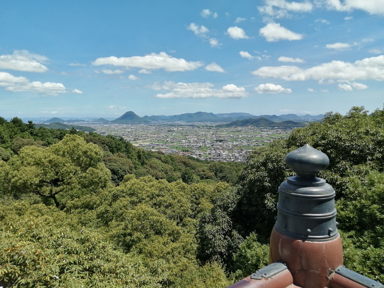 丸亀から自転車で行きました。表参道入口の金倉川までは約13km。道も平坦で楽々なのですが、その後には785段の階段が待っています。さらに奥社まで行ったので計1368段。いい運動になりました。それほど疲れなかったのは気持ちよい山道であったし、景色もよかったし、途中見所もいっぱいあったからだと思います。