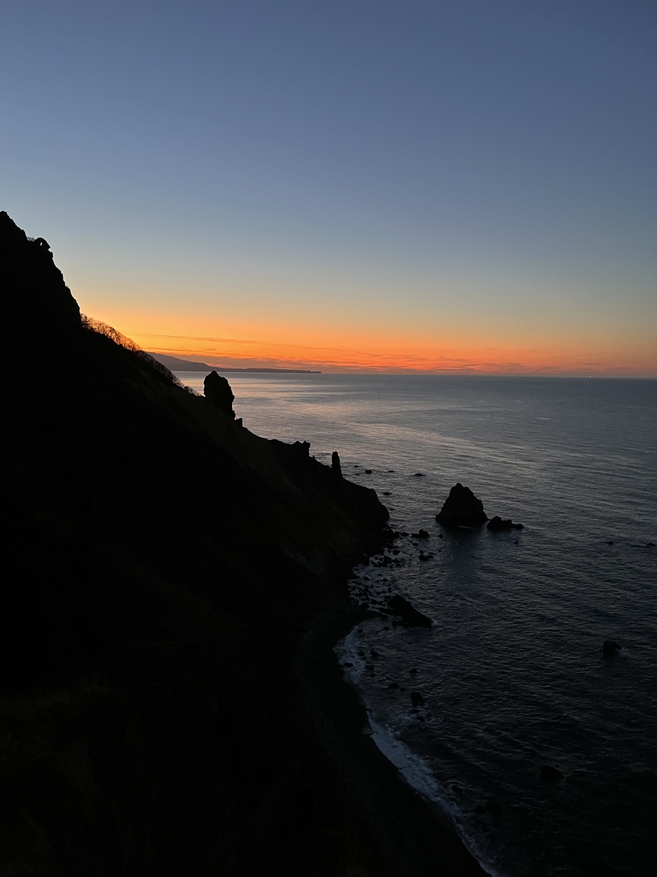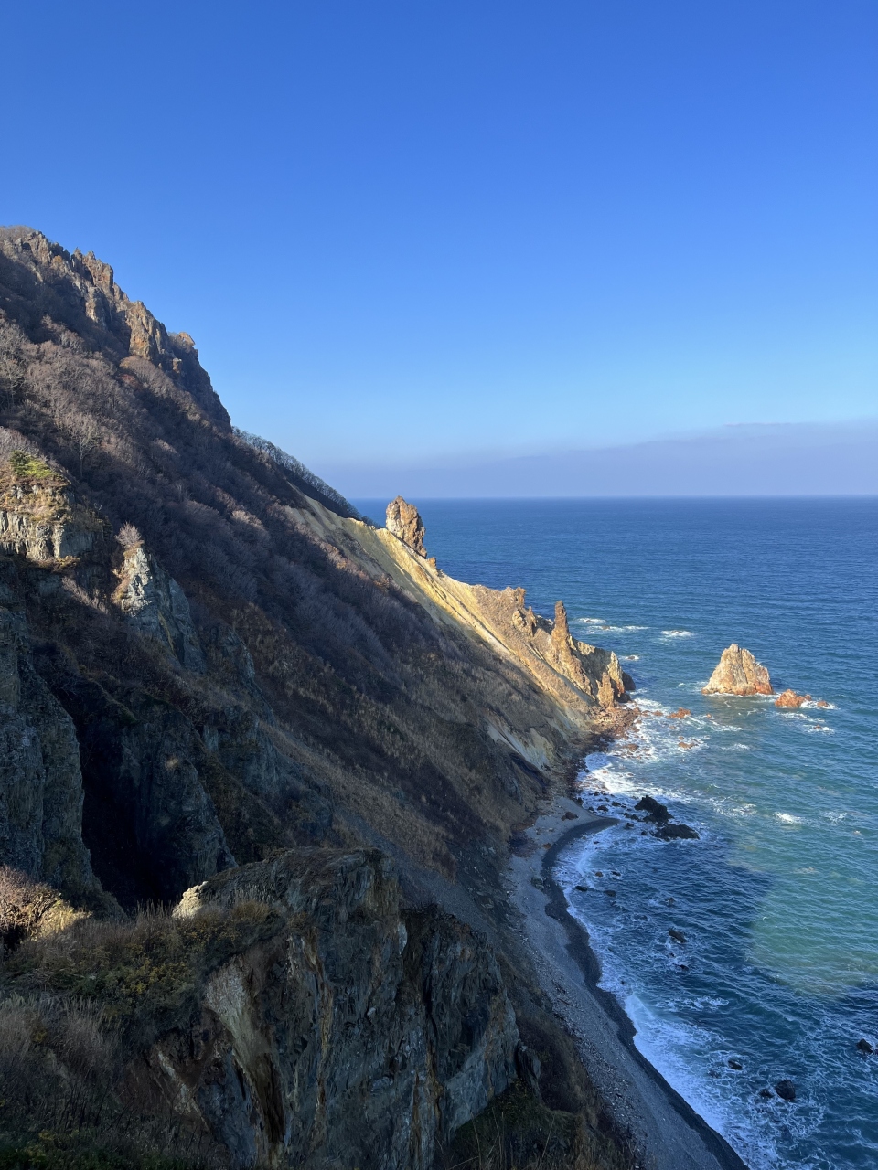 小樽市北部の祝津に広がる海岸線です。ホテルノイシュロス小樽に宿泊した際、部屋から海岸線が綺麗に見えました。断崖絶壁と奇岩が見所です。少し沖には、「トド岩」と呼ばれる奇岩もあります。夕焼けに染まる姿も美しかったです。
