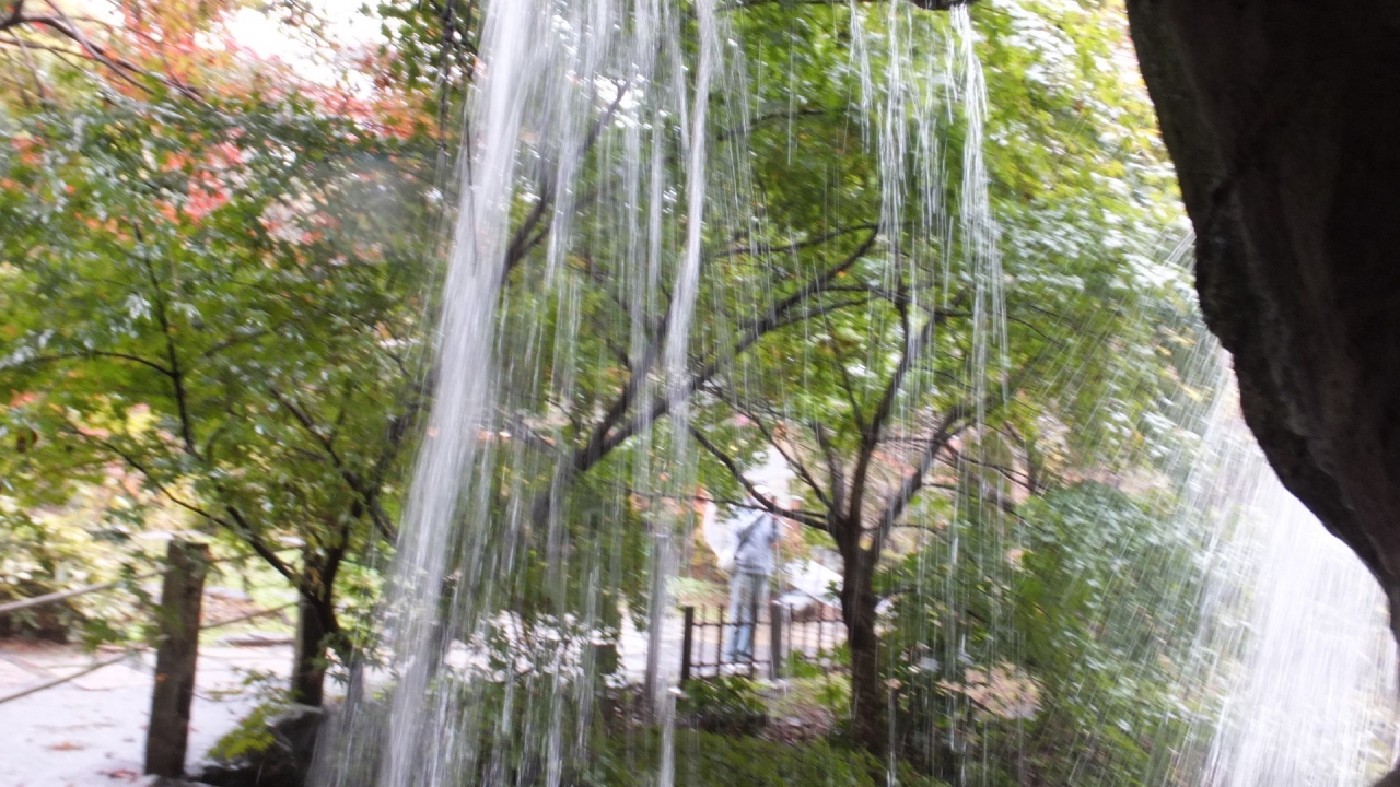 熱海の観光で梅園に行きましたが、その梅園の奥にこちらの滝があります。普通に表側からの滝の景色を見るのはもちろんなのですが、滝に近づくと洞窟のようになっていて、中を歩くと滝の裏側から水の流れも見ることができました。ちょっと面白いですね。
