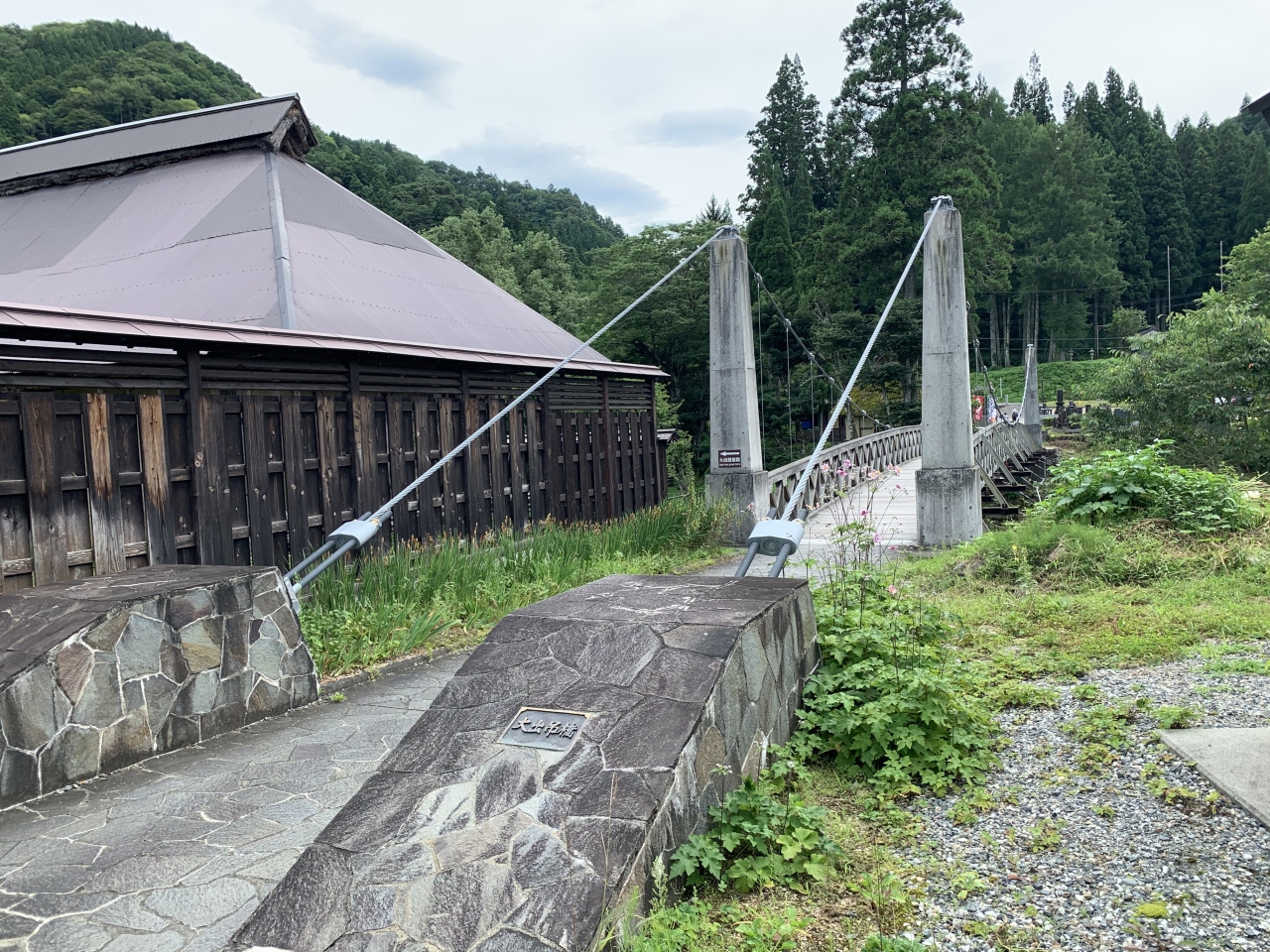 北アルプスを背景に吊り橋の写真を撮るのが定番…ですが曇ってました
