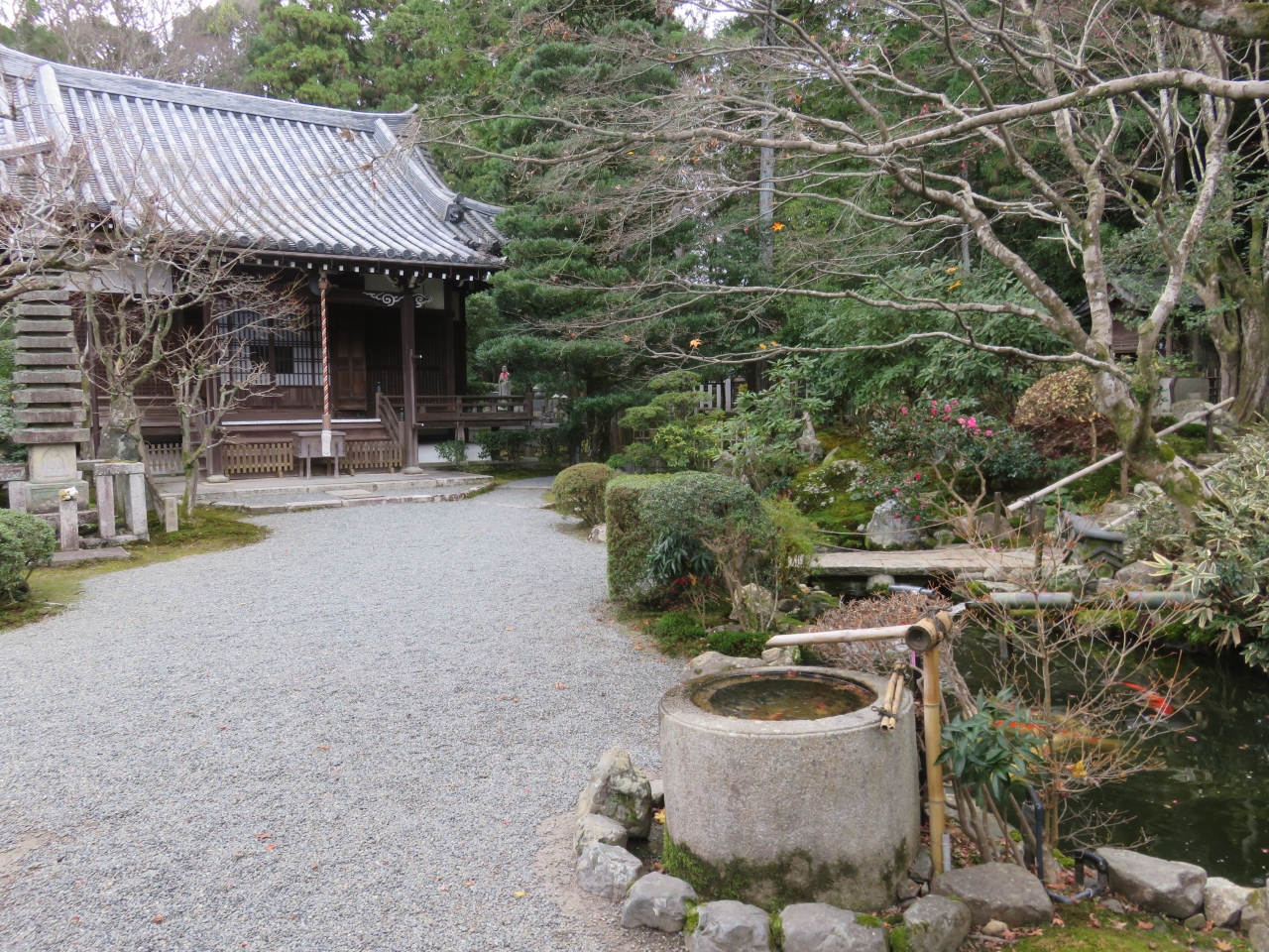 美しい紅葉、鯉の泳ぐ庭、朱塗りの愛染堂など冬の京都の良さを感じることができました。