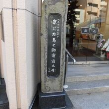 入口に岩井左馬之助寄宿の寺と刻まれた石碑
