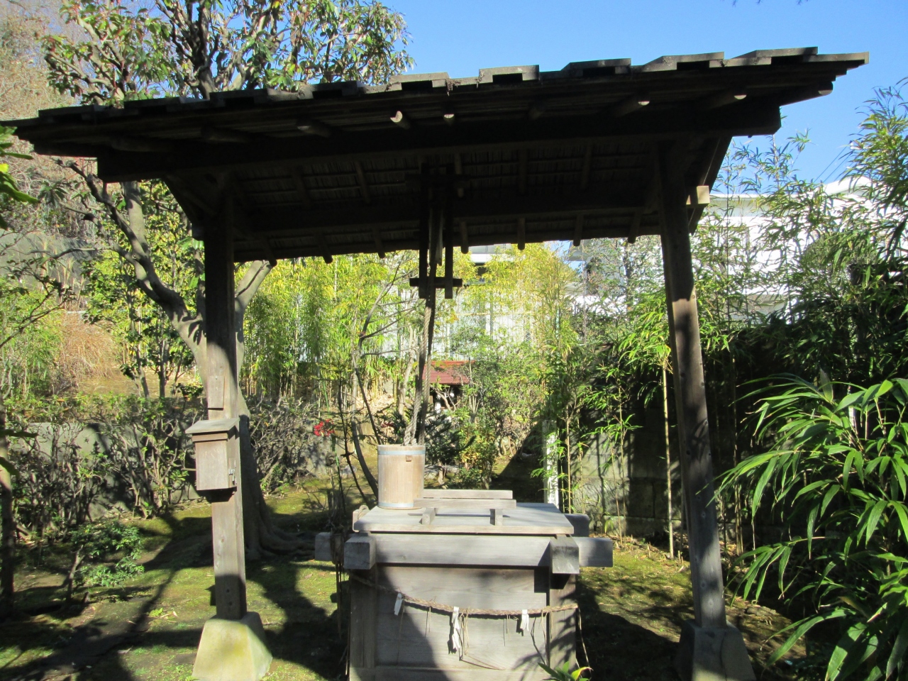 日蓮宗で弘法寺(市川市)の境外塔頭です。創建は1638年頃、弘法寺第十一世住職日立上人の隠居寺として建立。門前には真間万葉顕彰碑(真間の井を詠んだ高橋虫麻呂)があります。境内には、北原白秋歌碑、本堂があります。本堂軒下の透かし彫りの龍の彫刻は見事です。本堂の裏手は庭園になっており、手児奈が汲んだと言われる井戸「真間の井」、北原白秋が一時期澄んだ竹林があります。安全上とは思いますが、井戸は新しい木材で再建されており、歴史を感じることは出来ませんでした
