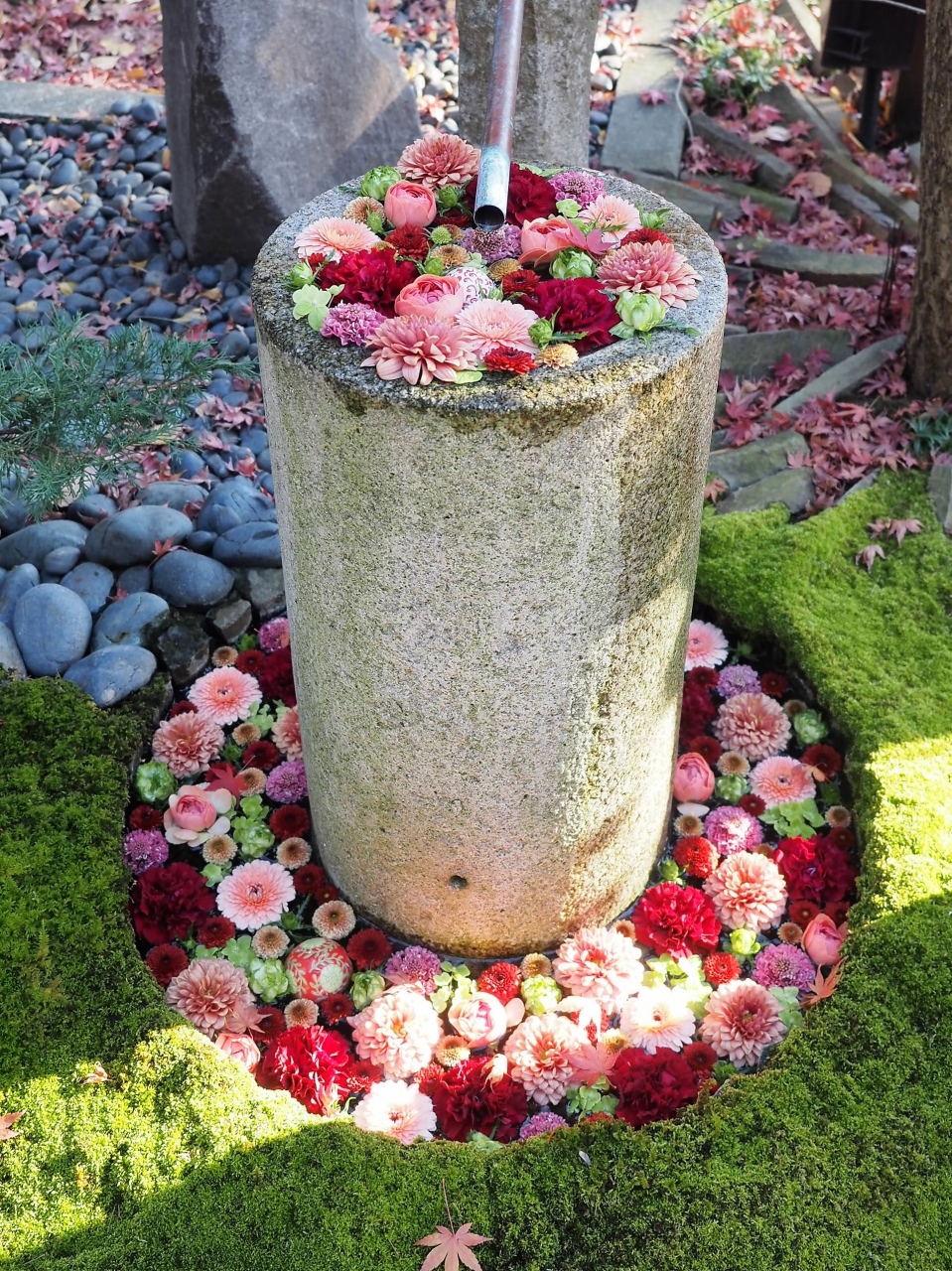 花手水を巡るツアーでお邪魔しました。美しい花々が大きな器に散りばめられたおりカメラを持った人達で賑わっていました。行田は街一帯で、花手水でおもてなしをしていて神社の周辺商店街も活気がありました。大きな駐車場も近隣にありました。