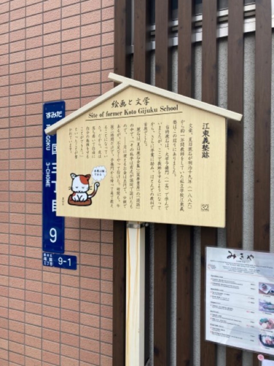 両国界隈の史跡を案内する高札型の案内板の一つですが、こちらは江東義塾の跡地になります。
