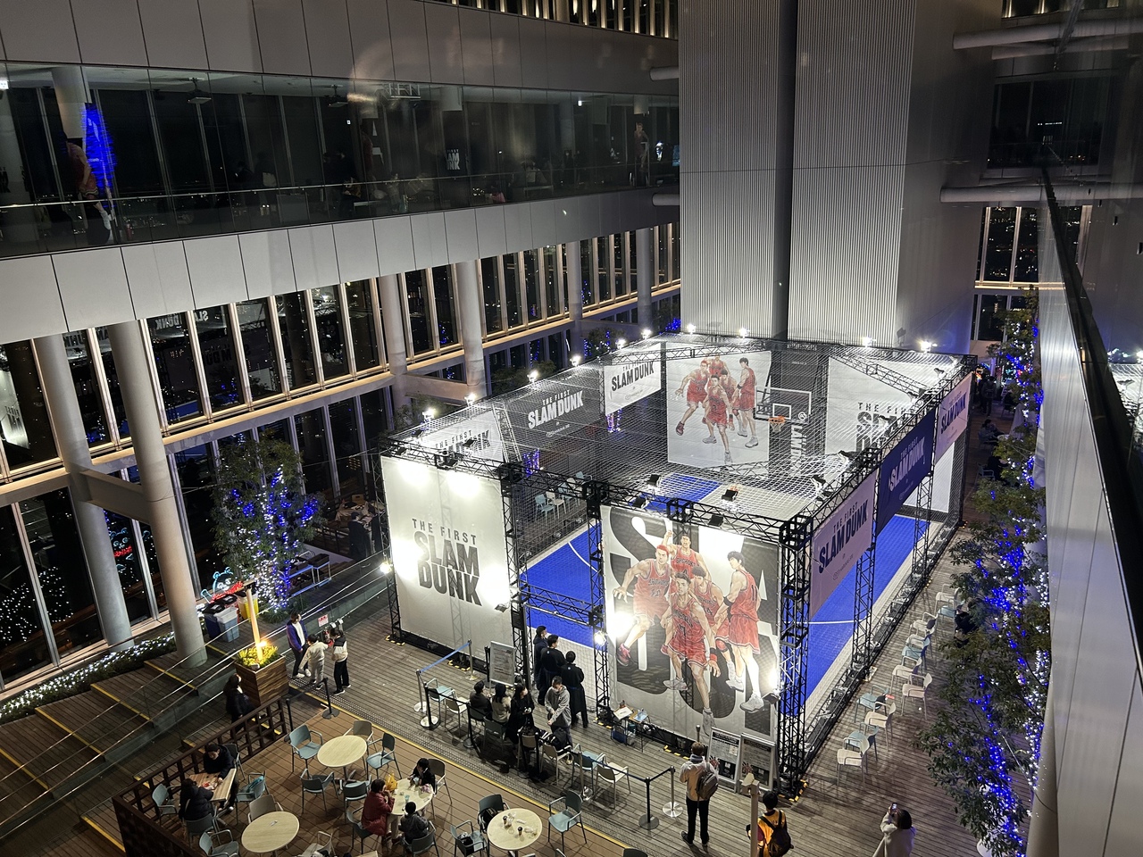 スラムダンクのイベント開催中でバスケットゴールが設置されたりしていて、人気のようでした。