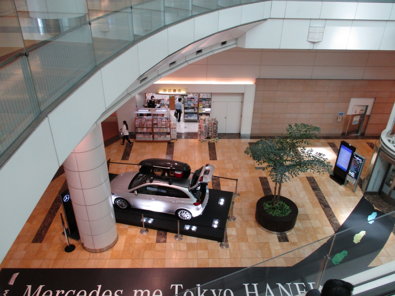 日本を代表する空港ですが、出発地下階で新車の展示を行っていました。展示会場ではこういう光景を見かけますが、空港内にどうやって入れたのか分からない新車が置いてあったのは驚きました。海外の空港ではあまり見かけない光景で珍しかったです。