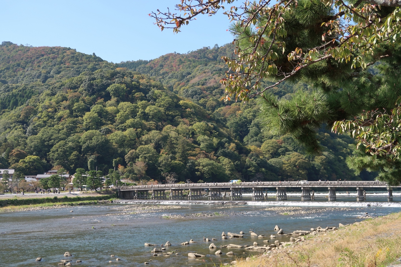 コロナの人流報道でよく目にするようになり、「月が渡っていく橋」というロマンティックな橋の名前にも魅かれて、訪問しました。少しだけ遠めから眺めてみると、車や観光客の姿も小さくなって気にならなくなり、「渡月橋」と名付けられた時代の風景を見ているかのような気分になりました。